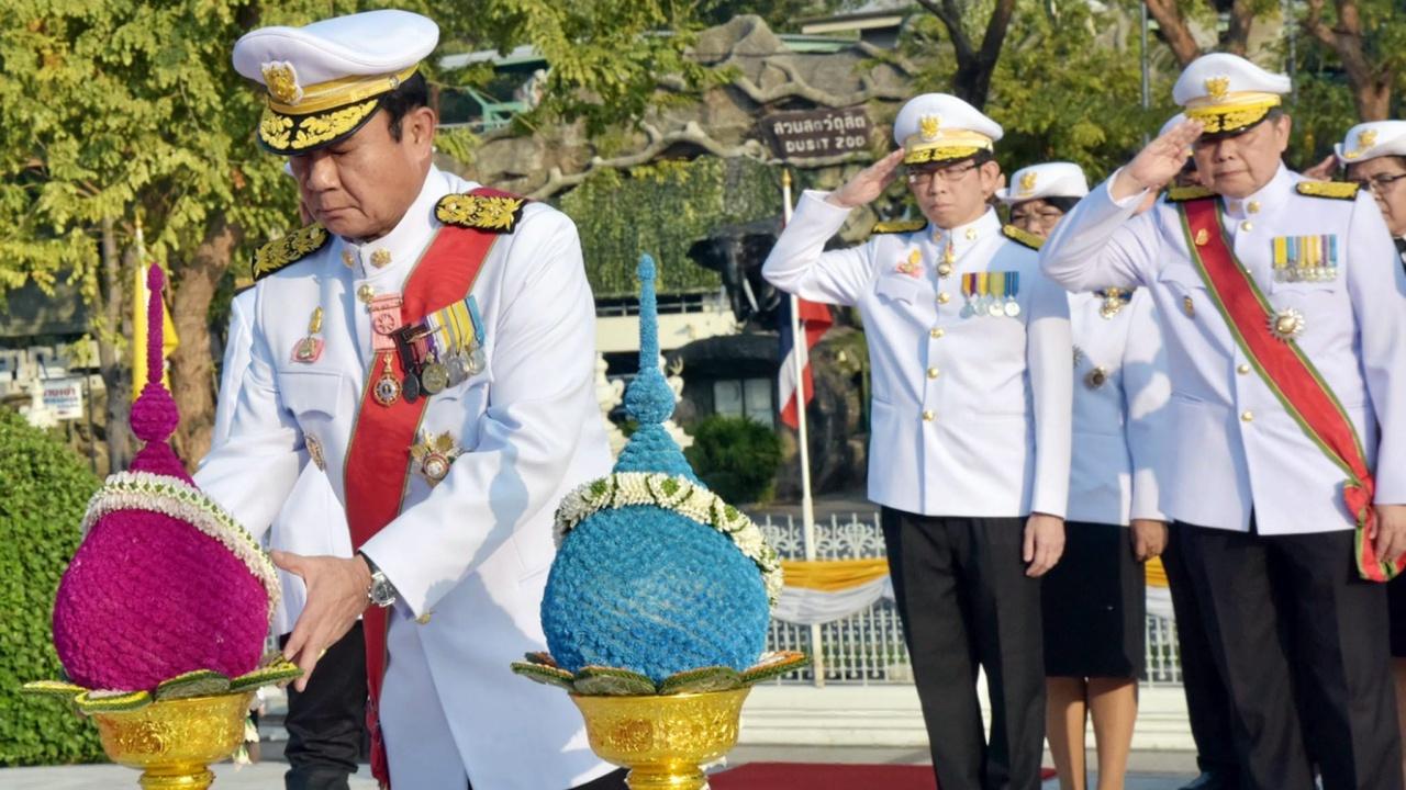 นายกฯ นำ วางพานพุ่มดอกไม้ รำลึกวันรัฐธรรมนูญไทย ขณะที่ตลอดช่วงบ่ายทั้งวัน มีบุคคลสำคัญ อาทิ ปธ. รองปธ.สนช. เลขาธิการสภาผู้แทนราษฎร และข้าราชการ ทยอยวางพานพุ่มเพื่อรำลึกเช่นกัน