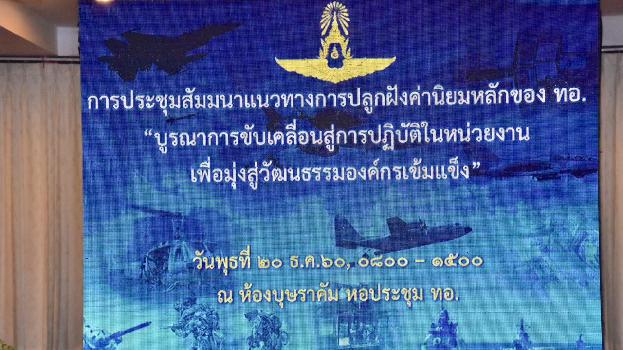 เมื่อเวลา 09.30 น. วันที่ 20 ธ.ค.60 ที่หอประชุมกองทัพอากาศ พล.อ.อ.จอม รุ่งสว่าง ผู้บัญชาการทหารอากาศ เป็นประธานในพิธีเปิดการประชุมสัมมนาแนวทางการปลูกฝังค่านิยมหลักของกองทัพอากาศ “บูรณาการขับเคลื่อนสู่การปฏิบัติในหน่วยงานเพื่อมุ่งสู่วัฒนธรรมองค์กรเข้มแข็ง” พร้อมมอบนโยบายเกี่ยวกับ "การปลูกฝังค่านิยมหลักของกองทัพอากาศ สู่ความเป็น Smart People อย่างยั่งยืน" ให้แก่หัวหน้าหน่วยขึ้นตรงกองทัพอากาศ และผู้รับผิดชอบงานขับเคลื่อนค่านิยมหลักในหน่วย จำนวน 100 คน ที่เข้าร่วมการประชุมสัมมนาในวันนี้ด้วย