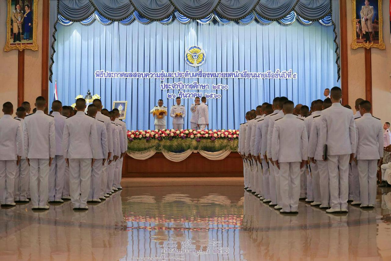 เมื่อเวลา 15.15 น. วันที่ 26 ธ.ค.60 ที่ หอประชุมภูติอนันต์ โรงเรียนนายเรือ พล.ร.อ.นริส ประทุมสุวรรณ ผู้บัญชาการทหารเรือ เป็นประธานพิธีประกาศผลการสอบความรู้ และประดับเครื่องหมายยศ ให้แก่นักเรียนนายเรือชั้นปีที่ 5 ประจำปีการศึกษา 2560