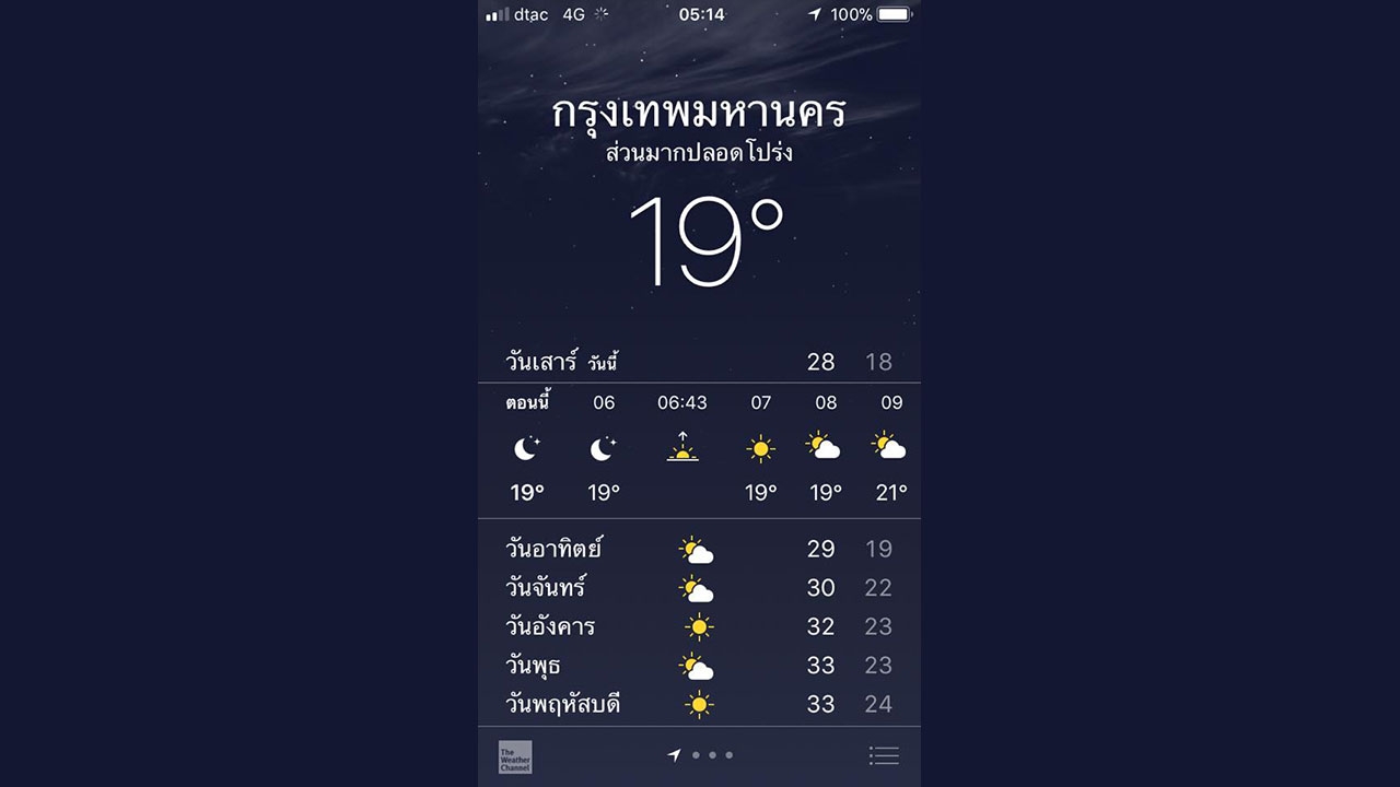 แอพพลิเคชั่นว่าด้วยอุณหภูมิและการพยากรณ์อากาศในมือถือของผมขึ้นตัวเลข 19 องศาเซลเซียส ให้เห็นอย่างชัดเจนตัวเบ้อเร่อ เมื่อผมคลิกเข้าไปดู