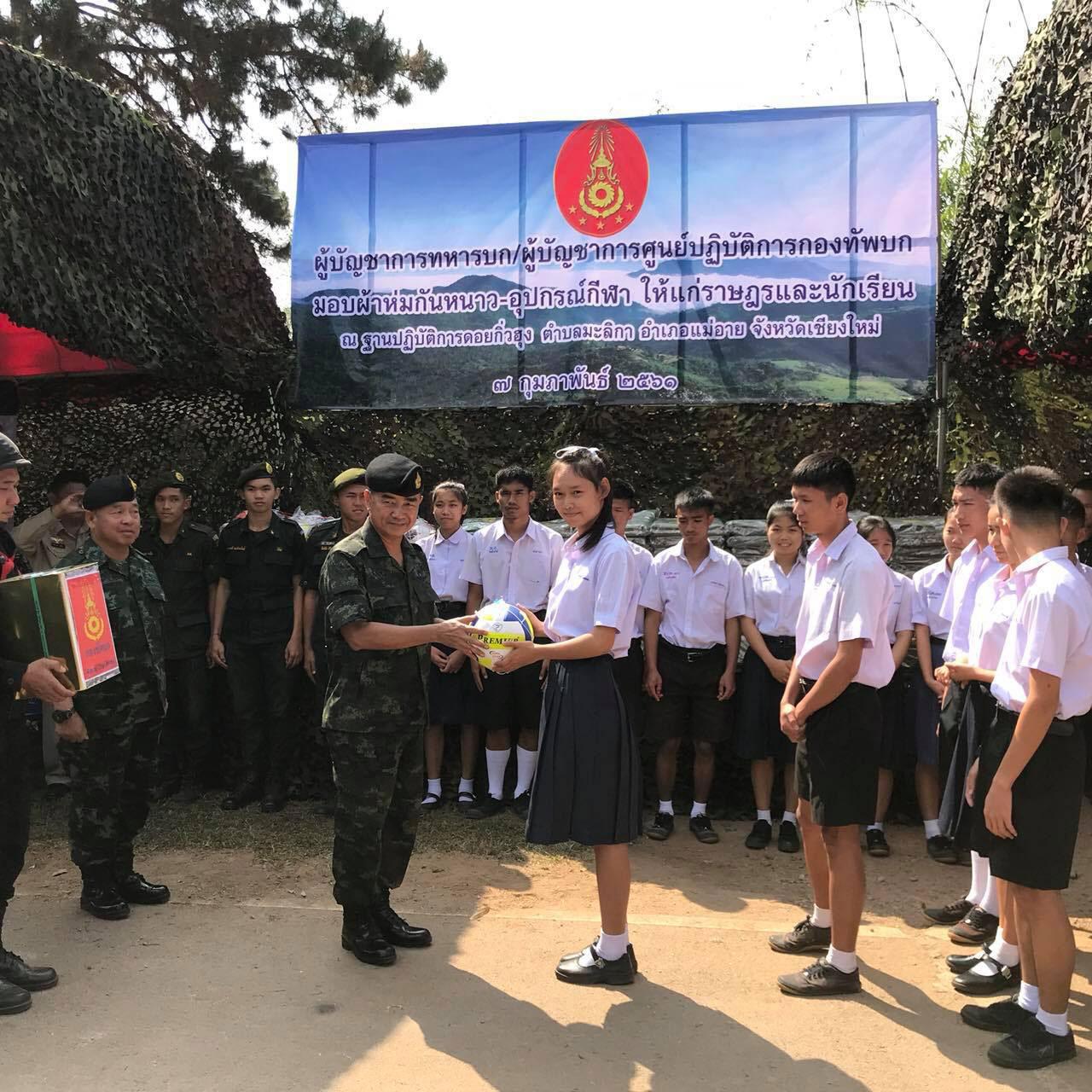 เมื่อวันที่ 7 ก.พ.61 พล.อ.เฉลิมชัย สิทธิสาท ผู้บัญชาการกองทัพบกและคณะ เดินทางตรวจเยี่ยมหน่วยทหารในพื้นที่ชายแดน และมอบผ้าห่มกันหนาวอุปกรณ์กีฬา ให้นักเรียน และราษฎรในพื้นที่อำเภอแม่อาย จังหวัดเชียงใหม่ ณ ฐานปฏิบัติการดอยกิ่วฮุง มี พล.ท.วิจักขฐ์ สิริบรรสพ แม่ทัพภาคที่ 3 พล.ต.จิรเดช กมลเพ็ชร ผู้บัญชาการกองกำลังผาเมือง พ.อ.อุดม แก้วมหา ผู้บังคับหน่วยเฉพาะกิจกรมทหารม้าที่ 4 พ.อ.จิตรพล รุจานันท์ ผู้บังคับการกองบังคับการควบคุมทหารพราน ศูนย์ปฏิบัติการกองทัพภาคที่ 3 ทหาร ตำรวจ ตำรวจตระเวนชายแดน ให้การต้อนรับ