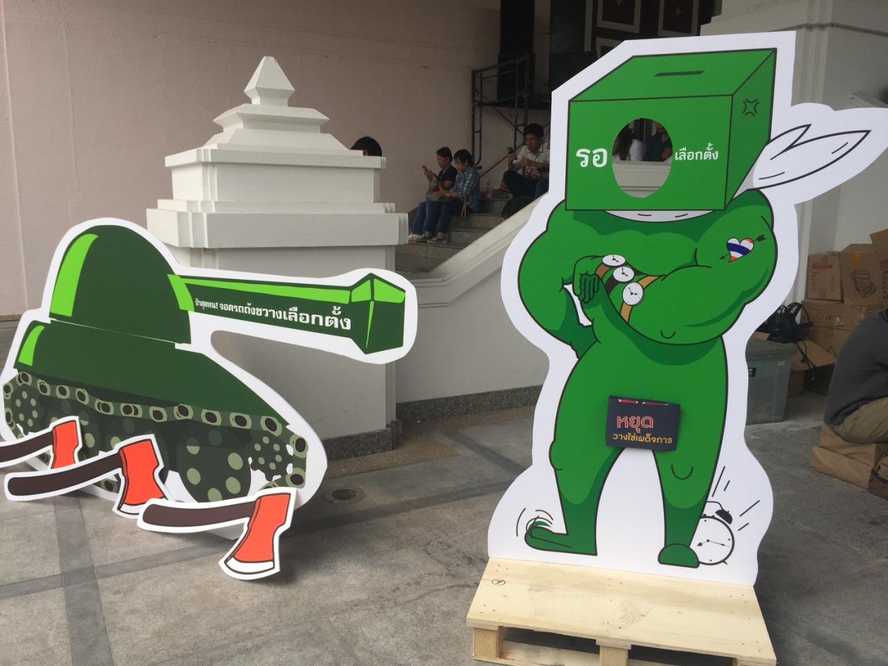 เมื่อวันที่ 24 ก.พ. 2561 กลุ่มฟื้นฟูประชาธิปไตย หรือ ดีอาร์จี และกลุ่มคนอยากเลือกตั้ง จัดกิจกรรมเรียกร้องให้รัฐบาลจัดการเลือกตั้งตามโรดแม็ปภายในปี 2561 ครั้งที่ 3 ภายใต้ชื่อว่า "ปากปราศรัย น้ำใจเชือดเผด็จการ 3-2-1 ถึงเวลาเปลี่ยน" บริเวณทางเดินข้างหอประชุมใหญ่ มหาวิทยาลัยธรรมศาสตร์ ท่าพระจันทร์ โดยมีประชาชนที่สนุบสนุนเดินทางมาร่วมกิจกรรมอย่างต่อเนื่อง ทั้งนี้ ภายในงานมีการนำสแตนดี้รูปรถถัง พร้อมขวาน 3 เล่ม และ รูปหุ่นสีเขียว ใบหน้าเป็นหีบเลือกตั้ง ขณะที่แขนซ้ายสวมนาฬิกา 3 เรือน มาให้ผู้สนับสนุนร่วมถ่ายรูป และนำโปสเตอร์หยุดวางไข่เผด็จการแจกให้ประชาชนและบุคคลทั่วไปด้วย
