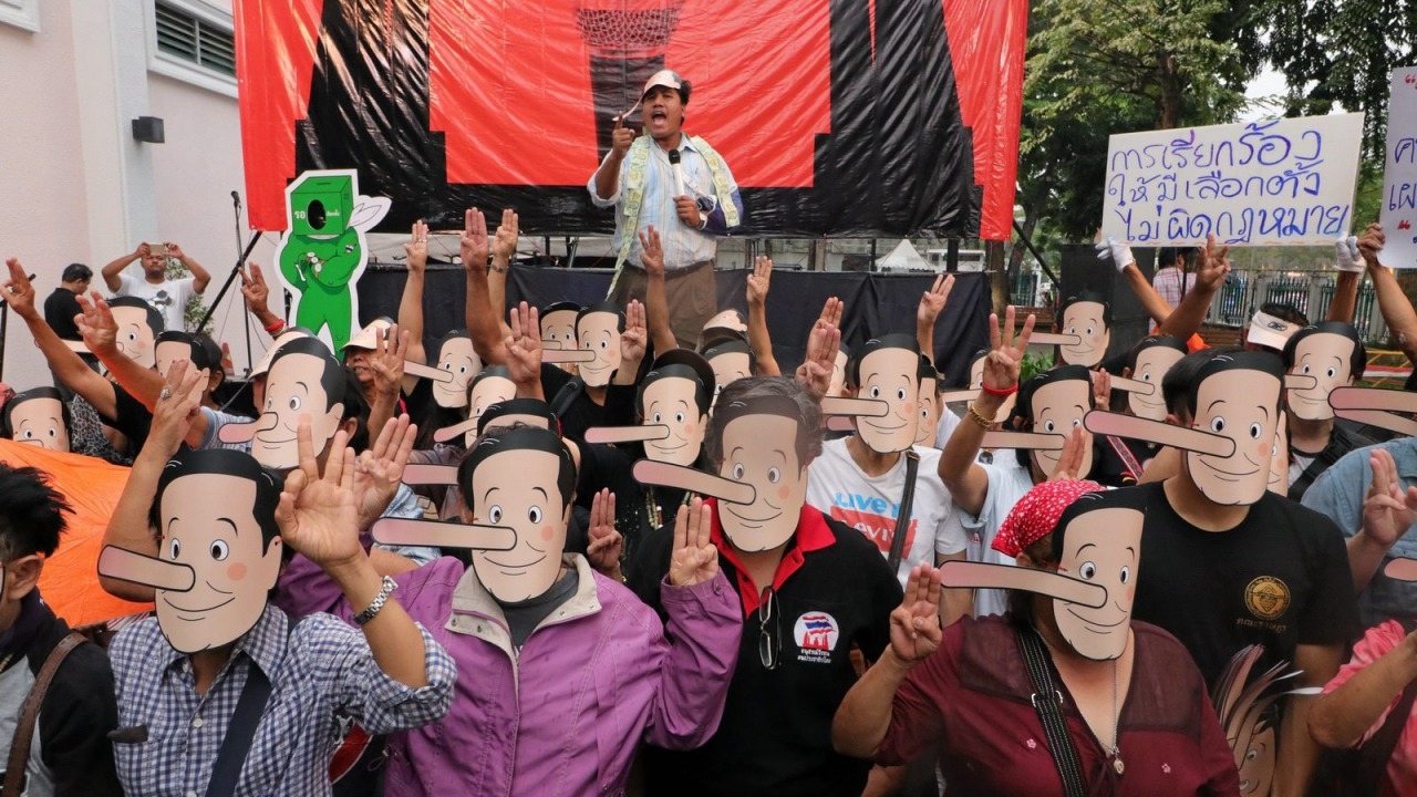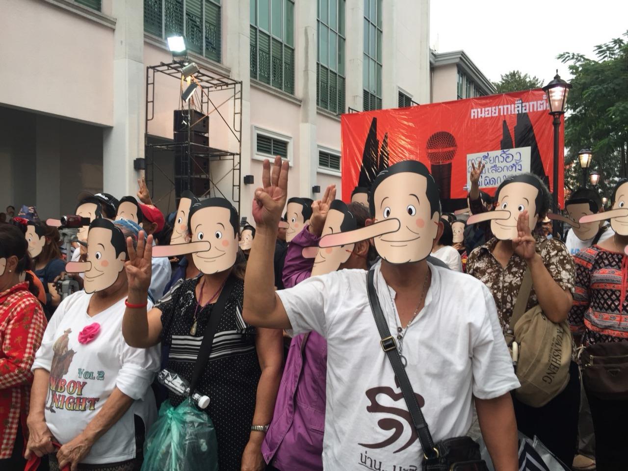 กลุ่ม DRG และคนอยากเลือกตั้ง จี้ให้รัฐบาลจัดการเลือกตั้งตามโรดแม็ป โดยมีเจ้าหน้าที่มาดูแลความเรียบร้อย ปิดท้ายใส่หน้ากากคล้ายบิ๊กตู่ มีจมูกยื่นยาวเหมือนพิน็อคคิโอ ด้าน วัฒนา โผล่แจมให้กำลังใจ...