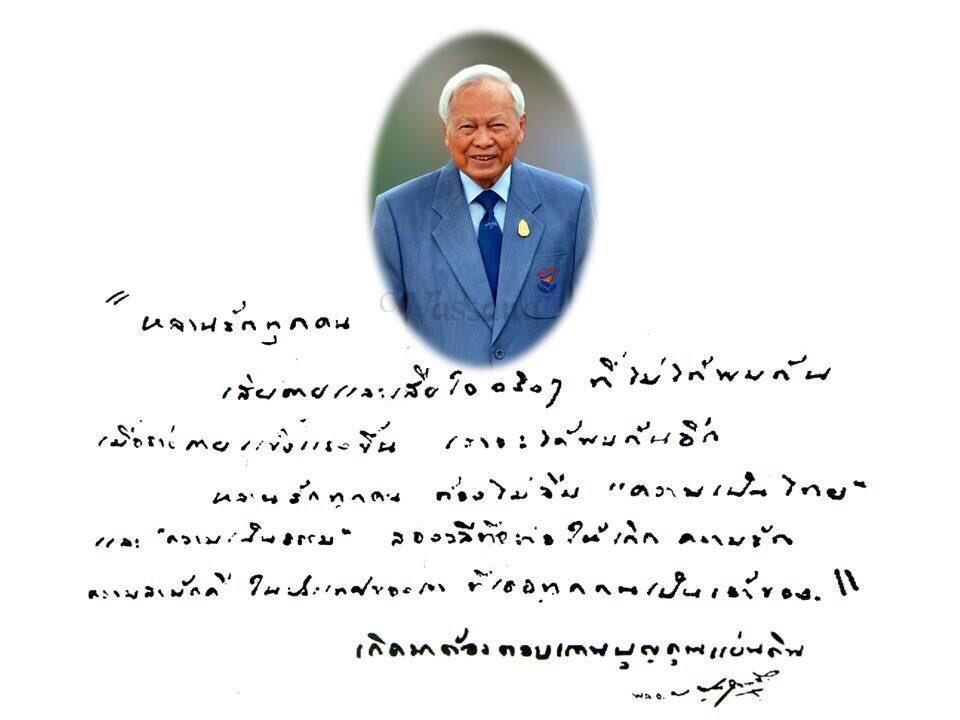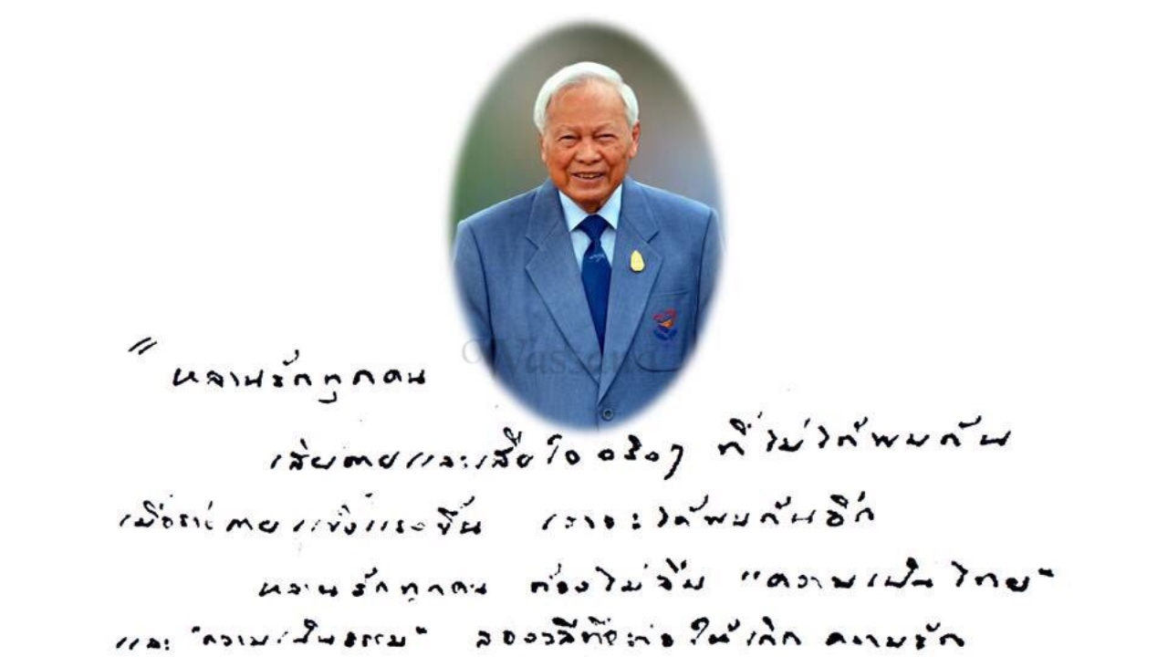 พล.อ.เปรม ติณสูลานนท์ ประธานองคมนตรีและรัฐบุรุษ เขียนสารด้วยลายมือ ขอหลาน ไม่ลืมความเป็นไทย และความเป็นธรรม