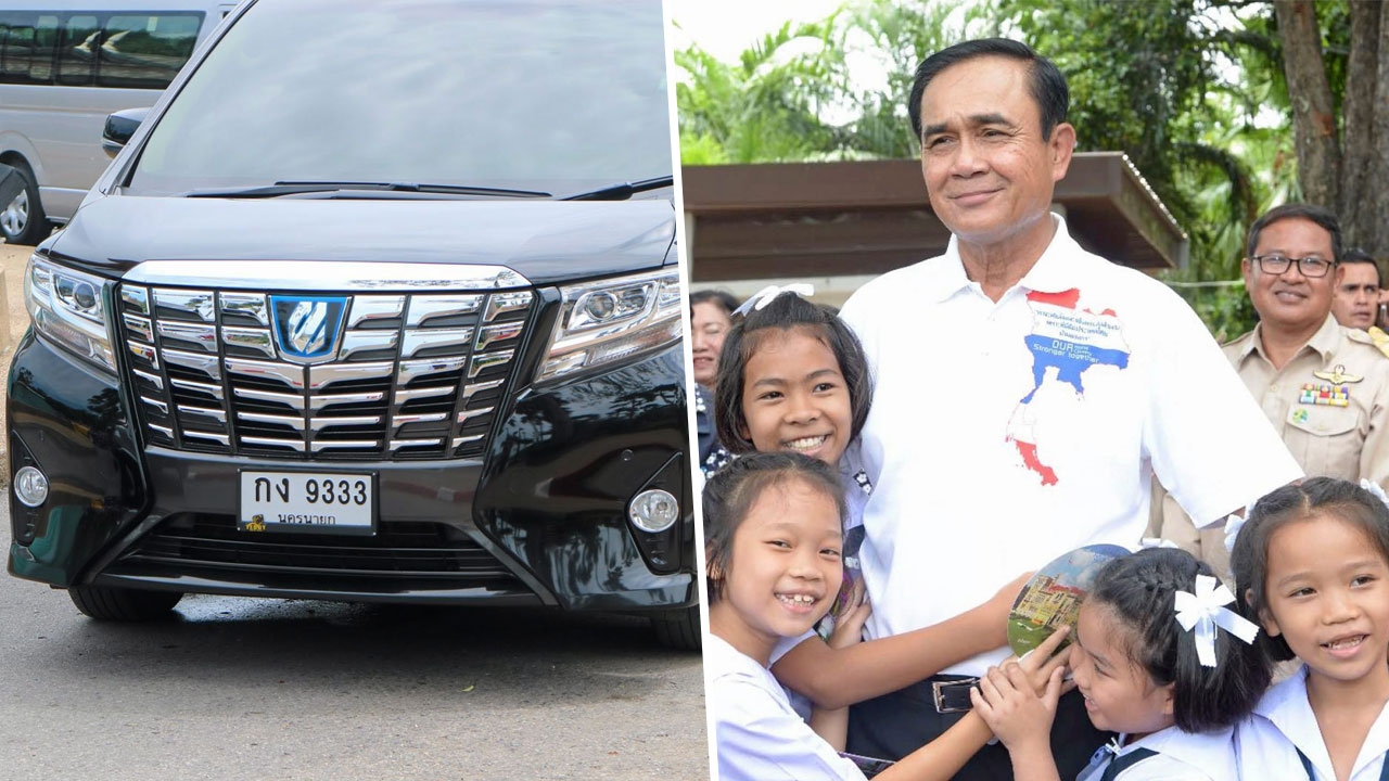 พล.อ.ประยุทธ์ จันทร์โอชา นายกฯ ยิ้มโอบกอด เด็กๆที่รุมล้อมถ่ายรูปด้วย ขณะเยี่ยมชมบึงสีไฟ อ.เมืองพิจิตร ส่วนรูปซ้าย คือรถยนต์ทะเบียน กง 9333 นครนายก ที่นายกฯ นั่ง ชาวบ้านเอาเลขไปลุ้นเล่นหวย.