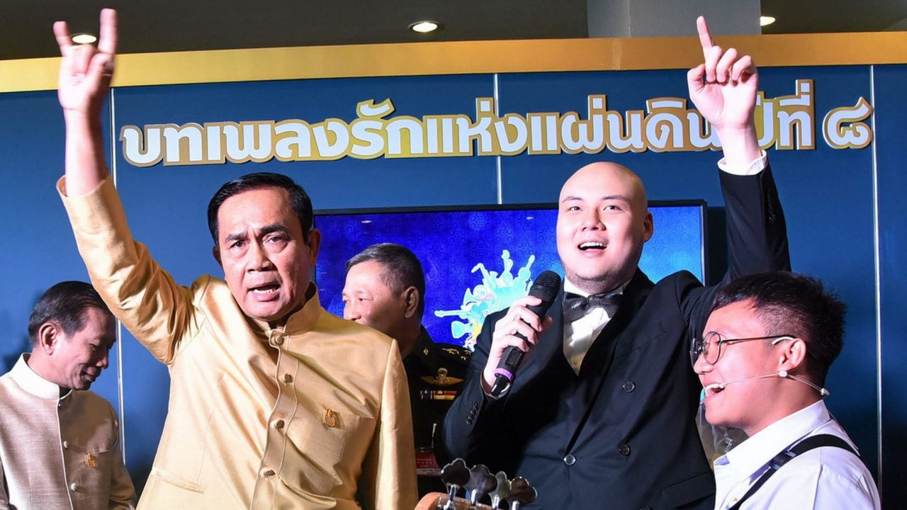 จากนั้น นายวัชรากร วังก้อน หรือน้องปุ๊บปั๊บ นักเรียนชั้นมัธยมศึกษาปี 6 โรงเรียนท่าบ่อ อ.ท่าบ่อ จ.หนองคาย ได้ร้องท่อนหนึ่งของเพลง "คืนความสุขให้กับประเทศไทย" ขณะที่นายกฯ ขอให้ร้องทั้งเพลง พร้อมกล่าวว่า เพลงนี้เพราะและมีความหมายดีทั้งเพลง จากนั้นนายกฯ ได้ขอให้ช่วยกันร้องเพลงนี้ทั้งเพลง และนายกฯ ได้ร่วมร้องด้วย และเมื่อร้องจบนายกฯ กล่าวว่า ทั้งเพลงมีโรดแม็ปของมันอยู่ และนายกฯ ยังได้ขอให้ กิต เดอะวอยซ์ ร้องเพลง "con te partiro" และเพลง "La vie en vose" ซึ่งเป็นเพลงแนวคลาสสิก โดยนายกฯ กล่าวว่า เราอยู่แบบพหุสังคม ไม่ว่าจะเชื้อชาติไหนก็มีความสุขในแผ่นดินไทย และทุกเพลงมีความหมาย ที่ให้ร้องให้ฟังไม่ใช่ว่าตนจะเป็นพวกไฮคลาส สมเด็จพระบรมราชินีนาถ ทรงสอนและรับสั่งไว้ว่า เราต้องเรียนรู้เขาเหมือนกัน เพลงทั้งหมดนี้เป็นเพลงตอนที่ตนตามเสด็จอยู่ก็พอจำได้อยู่บ้าง ทำนองและเสียงเพลงต่างๆ ไพเราะ ส่วนเพลงไทยก็ไพเราะเหมือนกัน