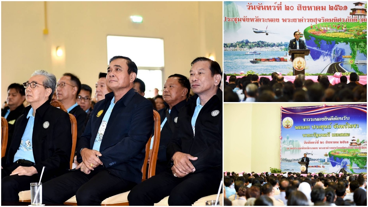 เมื่อวันที่ 20 ส.ค. พล.อ.ประยุทธ์ จันทร์โอชา นายกรัฐมนตรี พร้อมคณะรัฐมนตรี เดินทางมายังหอประชุมพระยาดำรงสุจริตมหิศรภักดี ศูนย์ราชการจังหวัดระนอง เพื่อพบปะประชาชนและเป็นสักขีพยานพิธีมอบสมุดประจำตัวผู้ที่ได้รับการจัดที่ดินทำกินให้ชุมชน ตามนโยบายรัฐบาล ลักษณะแปลงรวม ในพื้นที่ป่าสงวนแห่งชาติ “ป่าคลองลำเลียง - ละอุ่น” จำนวน 84 ราย 98 แปลง