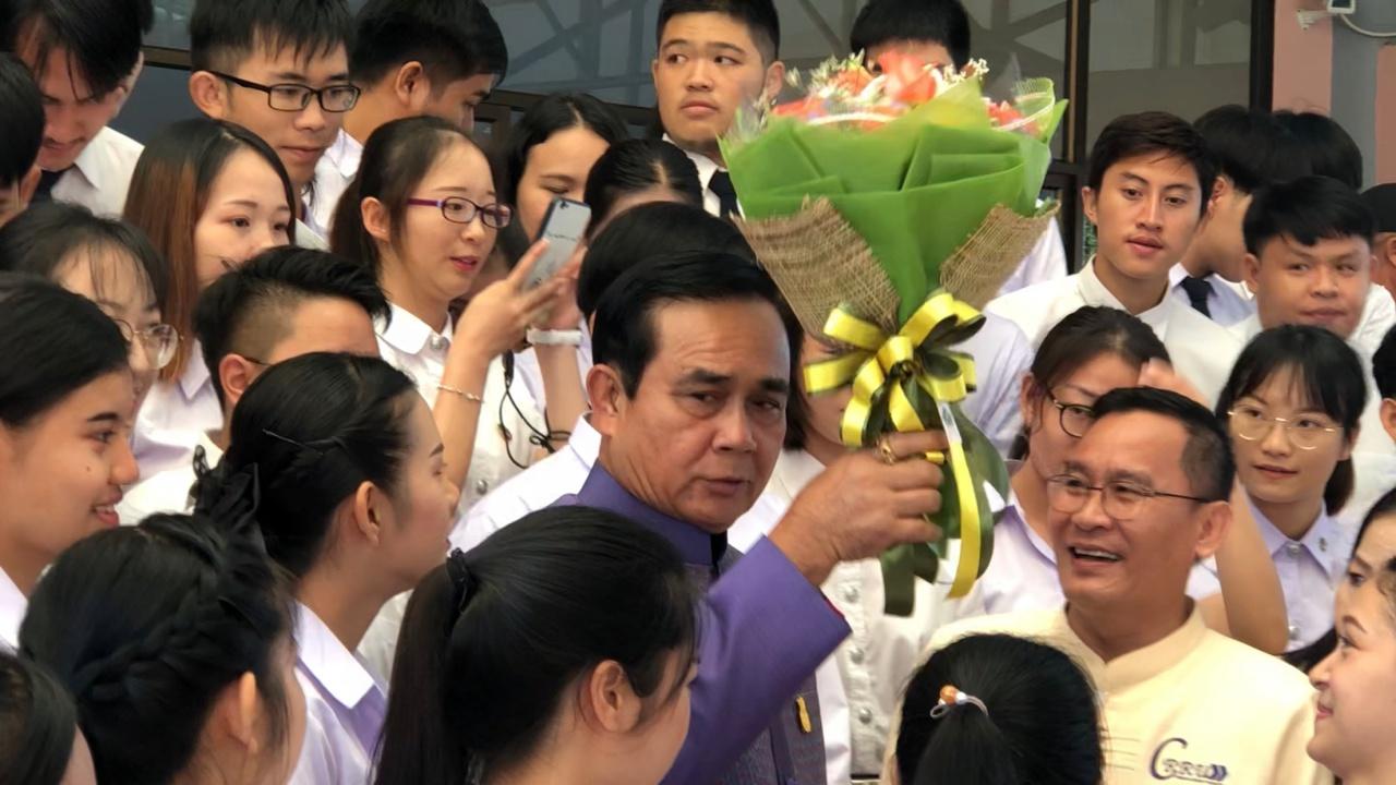 นายกฯ อารมณ์ดี หลังนศ.ราชภัฏเชียงราย ร้องเพลง "สะพาน" ต้อนรับ พร้อมชื่นชม นศ.เป่าแซ็กโซโฟนเพลง "ยามเย็น" ของในหลวง ร.9 ให้ฟัง ก่อนนำถกกลุ่มจังหวัด-ครม.สัญจร ภาคเหนือตอนบน 2