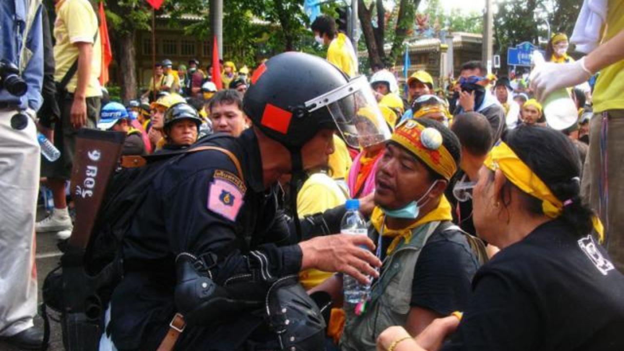 ขณะที่อีกเหตุการณ์หนึ่ง ที่คนจำได้ไม่ลืม คือ กรณีการ"สลายการชุมนุมกลุ่มพันธมิตรประชาชนเพื่อประชาธิปไตย" เมื่อวันที่ 7 ต.ค.2551 เหตุเพราะกลุ่มผู้ชุมนุมไปปิดล้อมรัฐสภา เพื่อขัดขวางรัฐบาลของนายสมชาย วงศ์สวัสดิ์ นายกรัฐมนตรีในขณะนั้น แถลงนโยบายรับตำแหน่งอย่างเป็นทางการ จนสุดท้ายมีผู้บาดเจ็บล้มตายเป็นจำนวนมาก ถึงขนาดที่ นายสมชาย น้องเขยนายทักษิณ ชินวัตร อดีตนายกรัฐมนตรี ต้องถอดชุดสูท ปีนกำแพงหนี อย่างทุลักทุเล