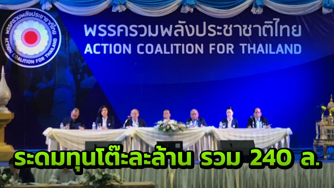 หลังจากนี้วันที่ 18 ธันวาคมนี้ พรรครวมพลังประชาชาติไทย จะจัดระดมทุนโต๊ะจีน 240 โต๊ะ โต๊ะละ 1 ล้านบาท