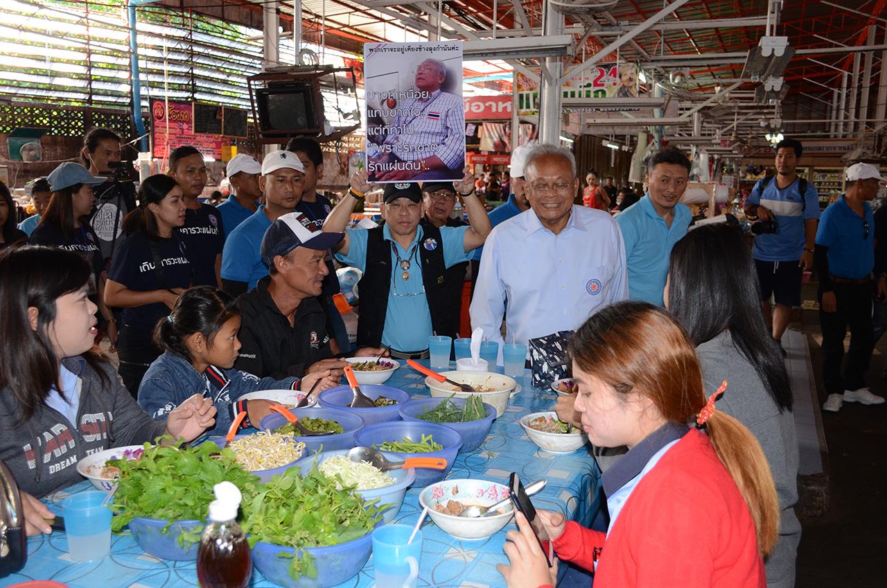 โดยบรรยากาศที่ตลาดประปา มีพ่อค้า แม่ค้า และประชาชนมาขอถ่ายภาพและถ่ายเซลฟี่คู่กับ นายสุเทพ เป็นที่ระลึกอย่างคึกคัก และในโอกาสนี้นายสุเทพได้แนะนำว่าที่ผู้สมัคร ส.ส.นครราชสีมา เขต 1 คือนายสมชาย พงษ์พินิจกุล นักธุรกิจ เจ้าของ บจก.โคราช ฟูดส์ โปรดักศ์ ให้กับประชาชนได้รับทราบด้วย