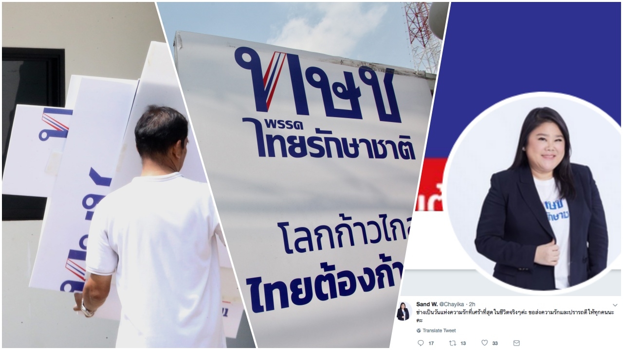 ขณะที่ทางพรรคไทยรักษาชาติ เตรียมยื่นคำร้องขอความเมตตา เพราะที่ผ่านมาไม่มีโอกาสชี้แจงต่อ กกต.ตามกระบวนการ โดยเมื่อเช้านี้ น.ส.ชยิกา วงศ์นภาจันทร์ หรือแซนด์ ผู้สมัคร ส.ส.บัญชีรายชื่อ และนายทะเบียนพรรคไทยรักษาชาติ (ทษช.) 1 ใน 14 กรรมการบริหารพรรค ซึ่งเป็นหลานสาวนายทักษิณ ชินวัตร อดีตนายกรัฐมนตรี ได้เขียนข้อความผ่านทวิตเตอร์ว่า “ช่างเป็นวันแห่งความรักที่เศร้าที่สุดในชีวิตจริงๆค่ะ ขอส่งความรักและปรารถนาดีให้ทุกคนนะคะ”