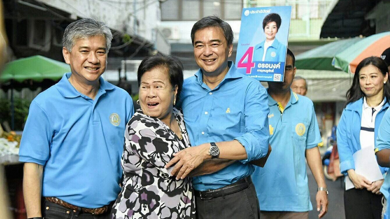 แฟนคลับหญิงสูงวัยโผเข้าสวมกอดนายอภิสิทธิ์ เวชชาชีวะ หัวหน้าพรรคประชาธิปัตย์ ด้วยความดีใจ ระหว่างขนแกนนำพรรค อาทิ นายอภิรักษ์ โกษะโยธิน อดีตผู้ว่าฯ กทม. ช่วย น.ส.อรอนงค์ กาญจนชูศักดิ์ ผู้สมัคร ส.ส.กทม. ของพรรคหาเสียง ที่สวนสุขภาพสมาคมแต้จิ๋ว ถนนจันทน์ แขวงยานนาวา เขตสาทร.