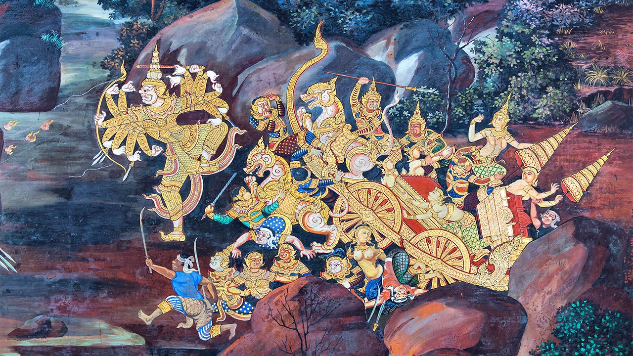 ยักษ์วัดแจ้งลากกระบอง เหาะข้ามแม่น้ำมาตีกับยักษ์วัดโพธิ์