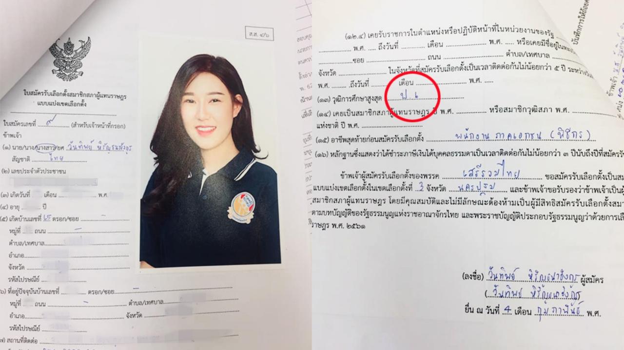 น.ส.วันทิพย์ ผู้สมัครเขต 3 จ.นครปฐม พรรคเสรีรวมไทย โพสต์เฟซบุ๊กแจง กกต. ลงวุฒิการศึกษาผิด และเป็นความผิดพลาดของตัวเองด้วย ชี้เป็นลายมือตัวเอง...