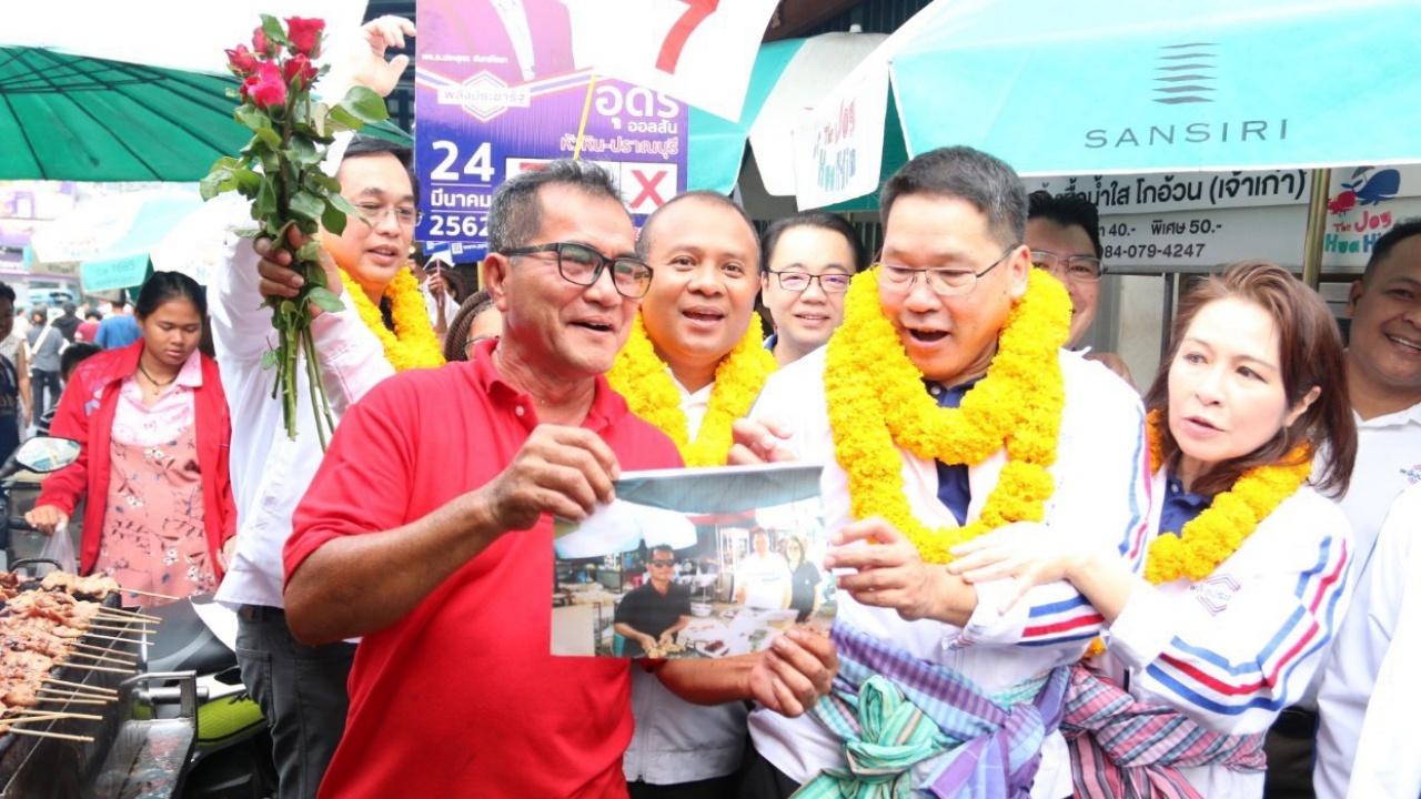 เมื่อวันที่ 16 มี.ค.62 ที่ จ.ประจวบคีรีขันธ์ นายอุตตม สาวนายน หัวหน้าพรรคพลังประชารัฐ (พปชร.) พร้อมด้วย นายอนุชา นาคาศัย ประธานยุทธศาสตร์การเลือกตั้งภาคกลาง และนายอุดร ออลสัน ผู้สมัคร ส.ส.เขต 2 หัวหิน-ปราณบุรี เบอร์ 7 ลงพื้นที่ตลาดสดฉัตรชัย เทศบาลเมืองหัวหิน เพื่อพบปะและแนะนำตัวผู้สมัครพรรคพลังประชารัฐกับพ่อค้าแม่ค้า รวมถึงประชาชนที่มาจับจ่ายซื้อของ ซึ่งบรรยากาศเป็นไปอย่างคึกคัก มีพี่น้องประชาชนให้การตอบรับอย่างล้นหลาม มีการมอบดอกไม้ มอบขนม และผลไม้ พร้อมส่งเสียงเชียร์ให้กำลังใจเป็นระยะ ทั้ง "ลุงตู่สู้ๆ" และ "รักลุงตู่" บางคนถึงขนาดเข้าสวมกอด นายอุตตม ด้วยความดีใจ และขอถ่ายรูปเป็นที่ระลึกตลอดสองข้างทางเดินตลาด