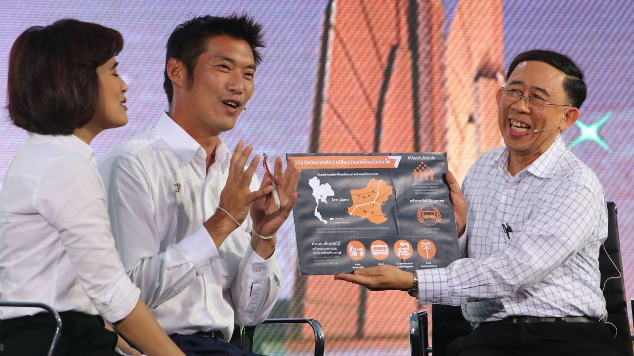 “ทางแก้ปัญหาความยากจนได้ มีทางเดียวคือ การสร้างงาน และจะต้องเป็นงานที่ใหม่ งานที่ดี งานมีคุณภาพ ซึ่งจะสามารถสร้างความมั่นคงในชีวิตให้กับประชาชนได้ ซึ่งเราอยากผลักดัน และพัฒนาสิ่งต่างๆ โดยไม่พึ่งพิงเทคโนโลยีต่างชาติ โดยการสามารถสร้างรถไฟรางเบาด้วยฝีมือแรงงานในประเทศ สร้างระบบขายตั๋ว สร้างระบบตัวรถและช่วงล่างได้ สร้างระบบตัวรางและอาณัติสัญญาณได้ หากทำได้ จะช่วยให้เกิดการสร้างงาน แก้ปัญหาจราจร แก้ปัญหาสิ่งแวดล้ม แก้ปัญหาการคลังได้” นายธนาธร กล่าว