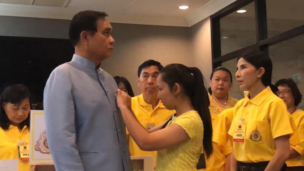เมื่อเวลา 09.00 น.วันที่ 26 มี.ค.ที่ทำเนียบรัฐบาล นางพัชราภรณ์ อินทรียงค์ ปลัดสำนักนายกรัฐมนตรี นางสุมิตรา อติศัพท์ ผู้ช่วยปลัดสำนักนายกรัฐมนตรี ในฐานะประธานคณะทำงานจัดทำเข็มที่ระลึกตราสัญลักษณ์พระราชพิธีบรมราชาภิเษก พุทธศักราช 2562 นำคณะเข้าพบ พล.อ.ประยุทธ์ จันทร์โอชา นายกรัฐมนตรีและหัวหน้าคณะรักษาความสงบแห่งชาติ (คสช.) เพื่อประชาสัมพันธ์และจำหน่ายเข็มที่ระลึกตราสัญลักษณ์ฯและเสื้อโปโลสีเหลืองประดับตราสัญลักษณ์ฯแก่นายกฯและครม. โดยสำนักปลัดสำนักนายกรัฐมนตรี (สปน.) ได้รับมอบหมายจากรัฐบาลดำเนินการจัดทำเข็มที่ระลึกตราสัญลักษณ์ฯ ตามที่รัฐบาลได้รับพระราชทานพระราชานุญาตให้จัดทำขึ้น เพื่อจำหน่ายให้แก่ประชาชนทั่วไป โดยรายได้จากการจำหน่ายทั้งหมดหลังหักค่าใช้จ่าย รัฐบาลจะนำขึ้นทูลเกล้าฯ ถวายโดยเสด็จพระราชกุศลตามพระราชอัธยาศัย