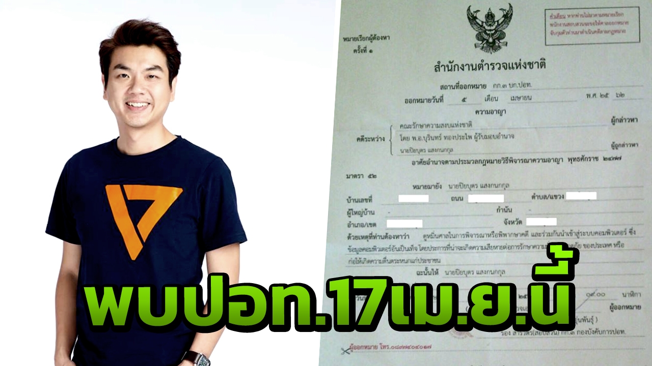 ผมยืนยันว่าวันที่ 17 เมษายนนี้ ผมจะเดินทางไปพบเจ้าหน้าที่ตำรวจที่ ปอท. แน่นอน