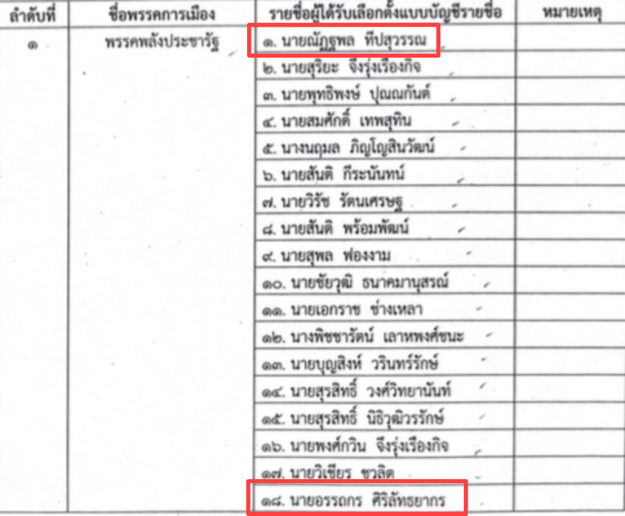 ปรากฏว่า พรรคพลังประชารัฐ ซึ่งได้ปาร์ตี้ลิสต์ 18 คน อันดับ 1 คือ นายณัฏฐพล ทีปสุวรรณ และอันดับ 18 นายอรรถกร ศิริลัทธยากร