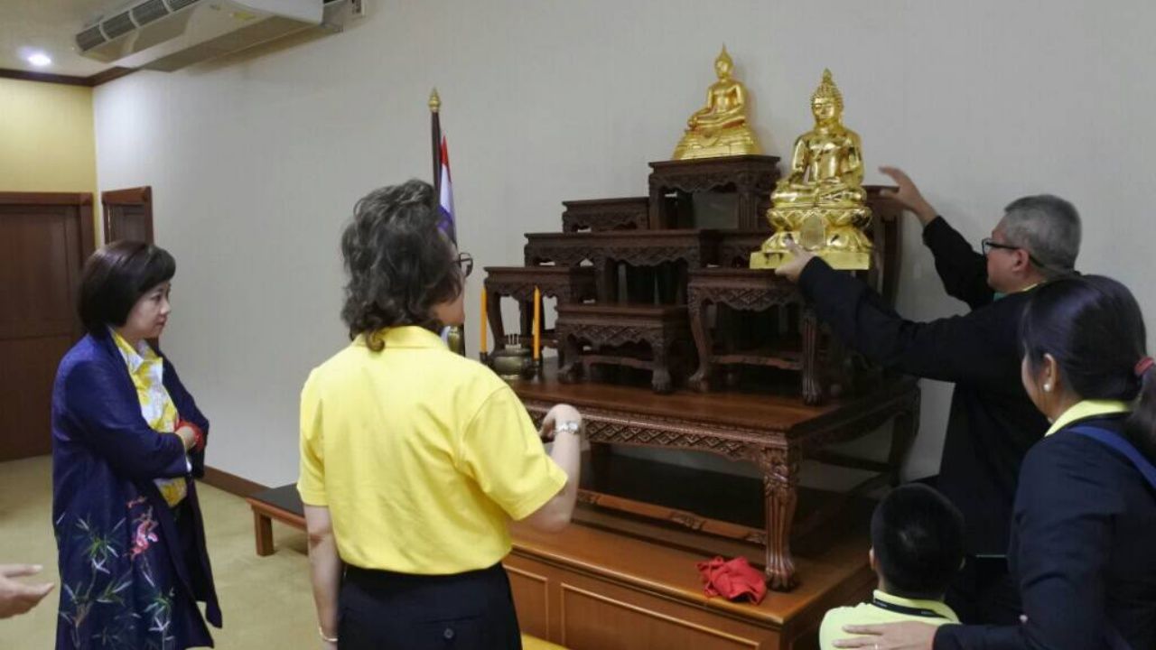 เวลา 14.30 น. วันที่ 15 ก.ค. ที่กระทรวงแรงงาน น.ส.อนุสรี ทับสุวรรณ ส.ส.บัญชีรายชื่อ พรรครวมพลังประชาชาติไทย เป็นตัวแทน ม.ร.ว.จัตุมงคล โสณกุล รมว.แรงงาน อัญเชิญพระไพรีพินาศกะไหล่ทอง ขนาดหน้าตัก 9 นิ้ว รุ่น 80 พรรษา สมเด็จญาณสังวรฯ วัดบวรนิเวศวิหาร สร้างปี 2536 และพระบรมรูปรัชกาลที่ 5 ครึ่งพระองค์ ทำจากหินอ่อนสีขาว ตั้งประดิษฐานบนโต๊ะหมู่บูชา ในห้องทำงาน รมว.แรงงาน บนชั้น 6 ของอาคาร 15 ชั้น