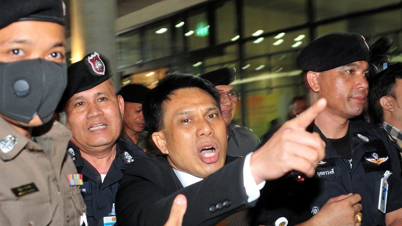 เจ้าหน้าที่ตำรวจรัฐสภารุมล้อมเข้าคุมตัว น.สพ.ธีทัชฐ์ เกียรติลดารมย์ อดีตผู้สมัคร ส.ส.พรรคพลังประชารัฐ ที่เข้ามาใช้โพเดียมแถลงข่าวโจมตี พล.ต.อ.เสรีพิศุทธ์ เตมียเวส ส.ส.บัญชีรายชื่อ หัวหน้าพรรคเสรีรวมไทย เนื่องจากไม่มี ส.ส.เซ็นชื่อรับรองให้ใช้พื้นที่รัฐสภาแถลงข่าว ขณะที่ น.สพ.ธีทัชฐ์ร้องโวยวายว่าถูกอุ้ม.