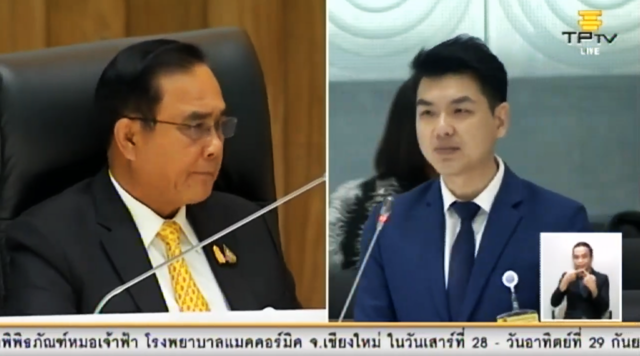 ทั้งนี้ ในช่วงหนึ่ง นายวีระกร คำประกอบ ส.ส.นครสวรรค์ พรรคพลังประชารัฐ ประท้วงว่าไม่อยู่ในประเด็น ไปพูดเรื่องต่ออำนาจ ส่วน นายสายัณห์ ก็ลุกขึ้นประท้วงอีกครั้งว่า นายปิยบุตร พูดแต่เรื่องรัฐประหารหลายครั้ง โดย นายชวน หลีกภัย ประธานสภาผู้แทนราษฎร ได้กล่าวเตือนให้ นายปิยบุตร อยู่ในประเด็น