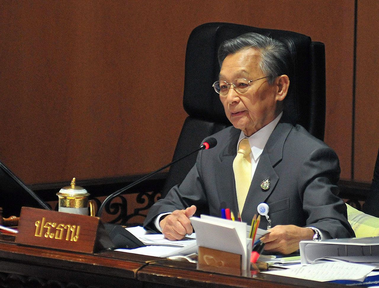เมื่อถามว่า มีข้อสงสัยการกดบัตรแสดงตนแทนกัน หลังนายขจิตร ชัยนิคม ส.ส.อุดรธานี พรรคเพื่อไทย อ้างว่าเสียบบัตรแสดงตนคาไว้ในห้องประชุมสภาฯระหว่างนับคะแนนใหม่ เมื่อวันที่ 4 ธ.ค.ว่า หากมีผู้ร้องเข้ามาพร้อมจะตรวจสอบให้ มองว่าการเสียบบัตรทิ้งไว้บริเวณที่นั่ง ส.ส.เป็นเรื่องปกติทำได้ ตนเคยเสียบบัตรทิ้งไว้บริเวณที่นั่งเช่นกัน เพราะ ส.ส.มีที่นั่งประจำ เมื่อมีการแสดงตนหรือลงคะแนนต้องกดบัตรในที่นั่งบริเวณเดิม โดยไม่มีใครกดบัตรแล้วดึงบัตรออกมาเก็บไว้ ยกเว้นจะเปลี่ยนที่นั่ง กรณีนี้หากนายขจิตรหรือใครได้รับผลกระทบว่ามีคนขโมยบัตรเพื่อไปออกเสียงหรือแสดงตนถือว่าเป็นผู้เดือดร้อน และส่งเรื่องให้ตนตรวจสอบได้ การเสียบบัตรคาไว้ถือเป็นเรื่องปกติ แต่การลงคะแนนหรือกดบัตรแสดงตนแทนกัน เข้าใจว่าคงไม่มีแมลงหรือตัวอะไรที่กดปุ่มให้ได้ เรื่องนี้อย่าใช้คำว่าสมมติขอให้เจ้าตัวทำเรื่องเข้ามา สิ่งที่ก่อนหน้านี้นายขจิตรระบุไปอาจไม่ใช่ หากมีเรื่องร้องมาต้องตรวจสอบ