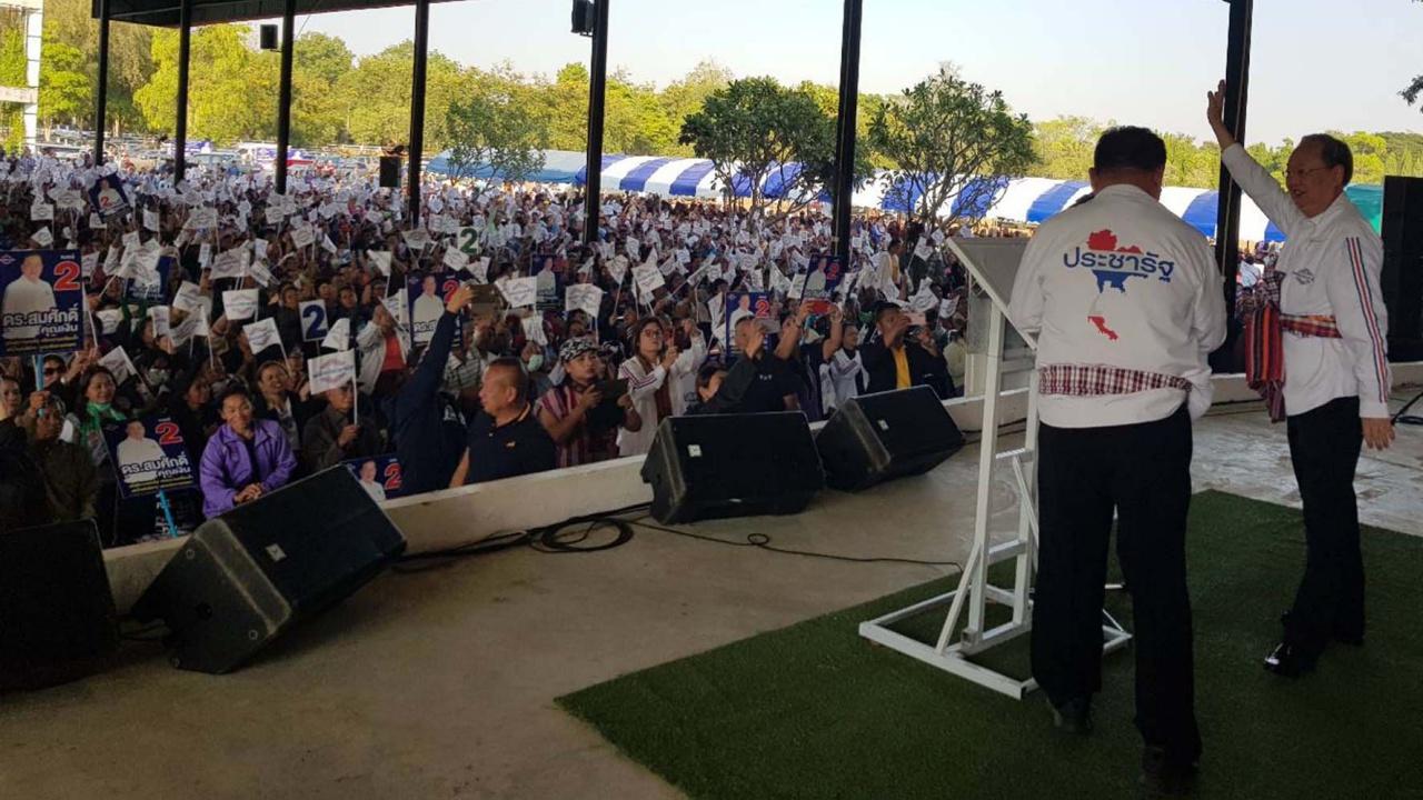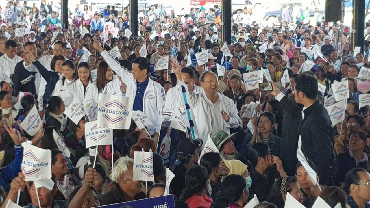 เมื่อเวลา 16.30 น. วันที่ 7 ธ.ค. ที่วิทยาลัยเกษตรกรรมและเทคโนโลยี จ.ขอนแก่น อ.มัญจาคีรี จ.ขอนแก่น นายสนธิรัตน์ สนธิจิรวงศ์ เลขาธิการพรรคพลังประชารัฐ พร้อมด้วย นายเอกราช ช่างเหลา ส.ส.ระบบบัญชีรายชื่อพรรคพลังประชารัฐ นำแกนนำของพรรคพลังประชารัฐ ในพื้นที่ภาคตะวันออกเฉียงเหนือ อาทิ นายสุภรณ์ อัตถาวงษ์, นายเจริญ แซ่เต็ง รวมทั้ง ส.ส.ของพรรคพลังประชารัฐในหลายจังหวัดของอีสาน ลงพื้นที่หาเสียงช่วยนายสมศักดิ์ คุณเงิน ผู้สมัคร ส.ส.ขอนแก่น เขตเลือกตั้งที่ 7 พรรคพลังประชารัฐ ด้วยการเปิดเวทีปราศรัยและพบปะประชาชนในพื้นที่ท่ามกลางการต้อนรับของชาว อ.มัญจาคีรี ที่มาร่วมรับฟังการปราศรัยรวมกว่า 3,000 คน