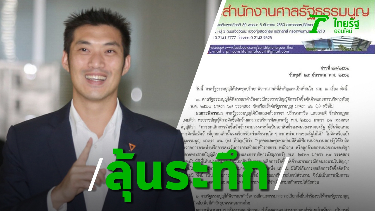 ศาล รธน.รับคำร้อง กกต.ยุบ "พรรคอนาคตใหม่" ปมกู้เงิน "ธนาธร" 191.2 ล้านแล้ว ให้ชี้แจงข้อกล่าวหาภายใน 15 วัน พร้อมนัดตัดสินคดีล้มล้างการปกครอง 21 ม.ค.ปีหน้า
