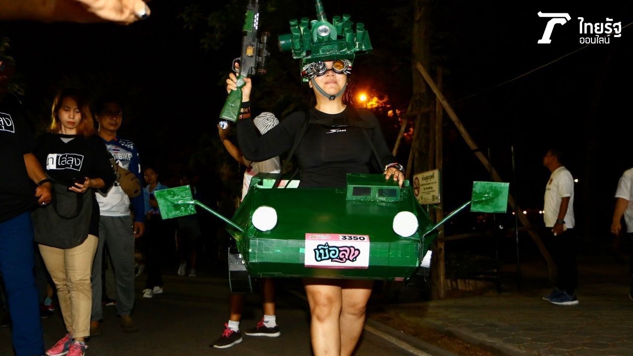 อย่างไรก็ตาม ผู้มาร่วมกิจกรรม มีการสร้างสีสันด้วยการแต่งตัวเป็นทหาร หรือตัวตลก พร้อมข้อความว่าเบื่อลุงอีกด้วย