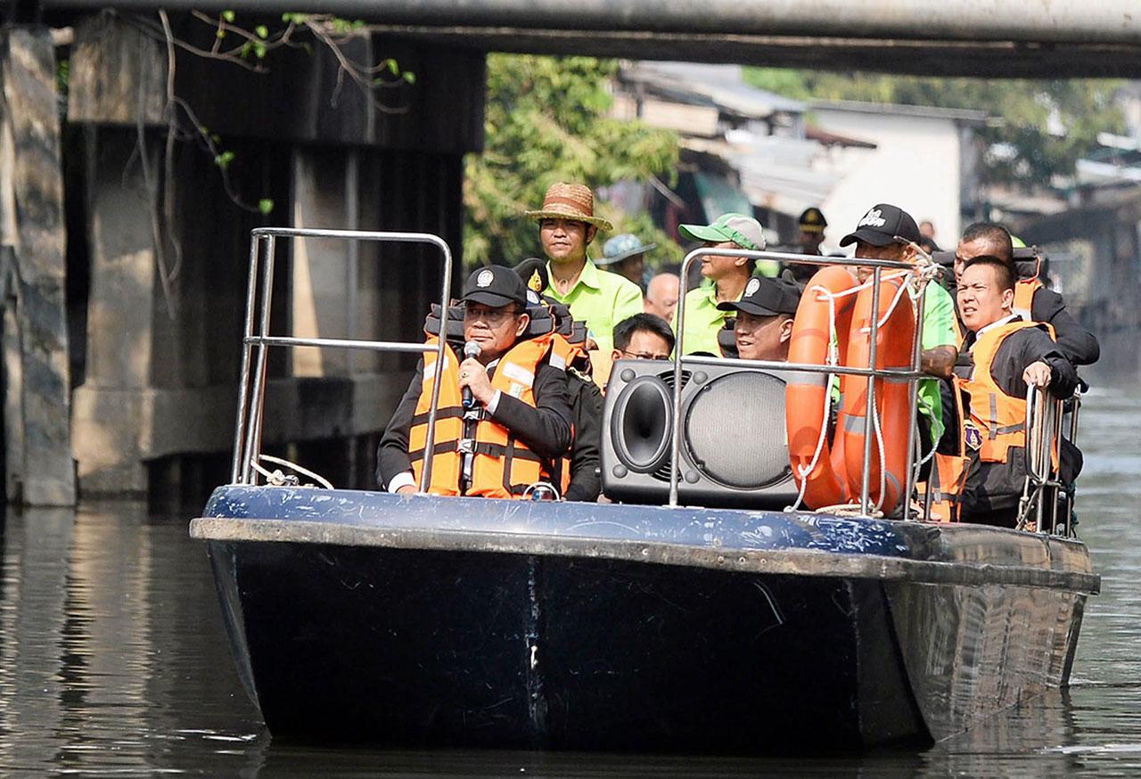 ต่อมาเวลา 14.00 น. ที่ท่าเรือวัดเสมียนนารี พล.อ.ประยุทธ์ พร้อมด้วย พล.อ.อนุพงษ์ เผ่าจินดา รมว.มหาดไทย นายจุติ ไกรฤกษ์ รมว.การพัฒนาสังคมและความมั่นคงของมนุษย์ ร่วมรับฟังการบรรยายกิจกรรมโครงการ “คืนบ้านใหม่ให้พี่น้อง คืนสายคลองให้ส่วนรวม” พัฒนาที่อยู่อาศัยชุมชนริมคลอง ตามนโยบายจัดระเบียบสิ่งปลูกสร้างรุกล้ำลำคลองของรัฐบาล และแก้ไขปัญหาน้ำท่วมใน กทม. พล.อ.ประยุทธ์พร้อมคณะล่องเรือไปยังท่าเรือชุมชน