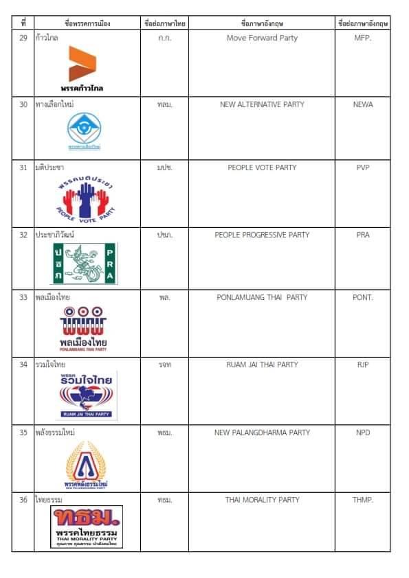 วันที่ 10 มี.ค. ผู้สื่อข่าวรายงานว่า เพจเฟซบุ๊กของสำนักกิจการพรรคการเมือง สำนักงาน กกต.ได้เผยแพร่ข้อมูลและภาพสัญลักษณ์ของพรรคการเมือง ที่ดำเนินกิจการอยู่ โดยเป็นข้อมูล ณ วันที่ 9 มี.ค. 2563 ว่ามีทั้งสิ้น 73 พรรค นอกจากจะมีการระบุหมายเหตุ ว่า ศาลมีคำสั่งให้ยุบพรรคการเมือง 1 พรรค คือ พรรคอนาคตใหม่ และมีการสิ้นสภาพความเป็นพรรคการเมือง 1 พรรค คือ พรรคกสิกรไทยแล้ว ยังมีการระบุถึงพรรคก้าวไกล หรือชื่อเดิมว่า "ร่วมพัฒนาชาติไทย" มีนายพิธา ลิ้มเจริญรัตน์ อดีต ส.ส.ของพรรคอนาคตใหม่ 55 อดีต ส.ส.ของพรรคอนาคตใหม่ ไปเปิดตัวเมื่อวันที่ 8 มี.ค.เพื่อสมัครเป็นสมาชิกพรรค ว่า อยู่ในลำดับที่ 29 ของบัญชีรายชื่อพรรคการเมือง ที่ดำเนินกิจการอยู่ ใช้ชื่อภาษาอังกฤษว่า Move Forward Party ชื่อย่อ ก.ก. จัดตั้งวันที่ 1 พ.ค