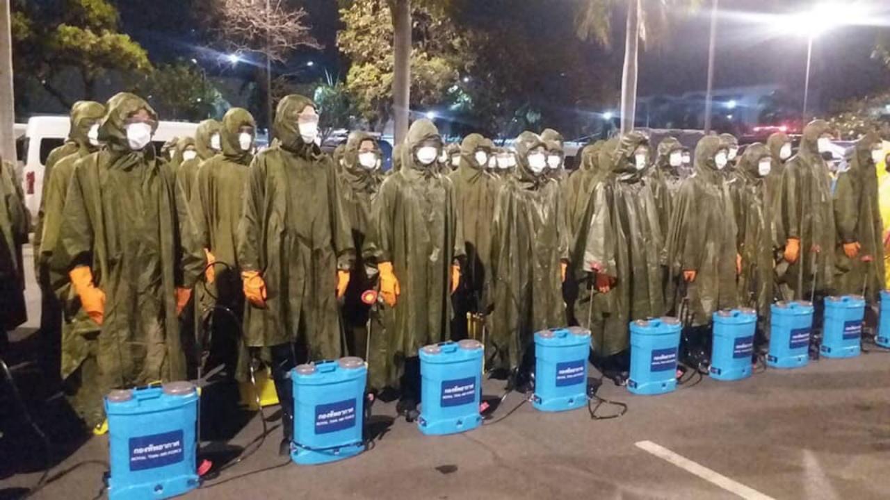 กำลัง "ทหารอากาศ" พร้อมหน่วยงานที่เกี่ยวข้อง ลุยล้างพื้นที่รังสิต ฉีดพ่นน้ำยาฆ่าเชื้อโรค จุดที่มีประชาชนเข้าใช้บริการหนาแน่น ฆ่าเชื้อโควิด-19