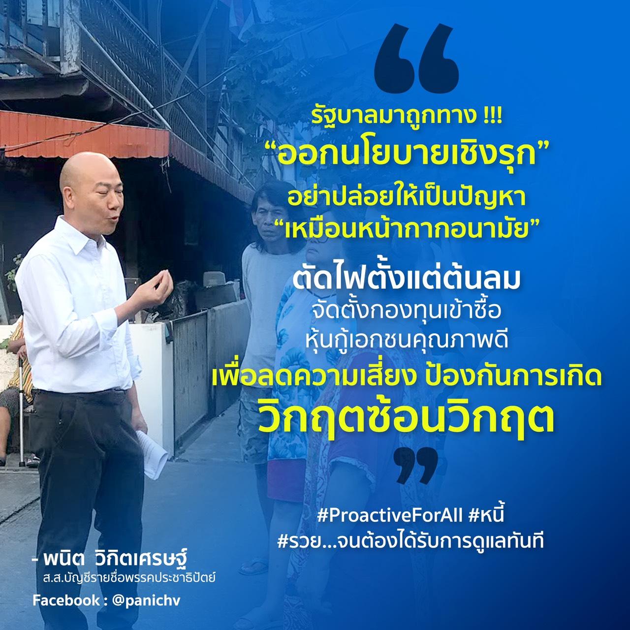 วันที่ 13 เม.ย. นายพนิต วิกิตเศรษฐ์ ส.ส.บัญชีรายชื่อ พรรคประชาธิปัตย์ โพสต์เฟซบุ๊กเรื่อง “รัฐบาลมาถูกทาง!! ออกนโยบายเชิงรุก อย่าปล่อยให้เป็นปัญหา เหมือนหน้ากากอนามัย ต้องนำหน้าสถานการณ์” ว่า ผมขอชื่นชมและสนับสนุนนโยบายของรัฐบาล ที่เข้ามาดูแลตราสารหนี้ของบริษัท ผ่าน ธปท.ในการออก พ.ร.ก. จัดตั้งกองทุนบีเอสเอฟ (BSF) นโยบายถือว่า เป็นนโยบายเชิงรุกที่มีการจัดการวางแผนเตรียมการโดยมองถึงอนาคต (แทนการทำนโยบายเชิงรับ ซึ่งคือการทำนโยบายสำหรับการแก้ปัญหาที่เกิดขึ้นแล้ว เช่น การตั้งรมว.มหาดไทย มาคุมการบริหารหน้ากากอนามัย) ในฐานะที่ผมเคยทำงานในตำแหน่ง “ผู้จัดการกองทุน” ทั้งในและต่างประเทศมามากกว่า 10 ปี ซึ่งเป็นช่วงที่ประเทศไทยได้ประสบกับวิกฤตการณ์ทางเศรษฐกิจและการเงินถึง 2 ครั้ง พ.ศ. 2540 (วิกฤติต้มยำกุ้ง) และ พ.ศ. 2551 (วิกฤติแฮมเบอร์เกอร์) และได้รับความเสียหายอย่างสูงไม่ต่างจากวิกฤติที่กำลังเกิดขึ้นในตอนนี้