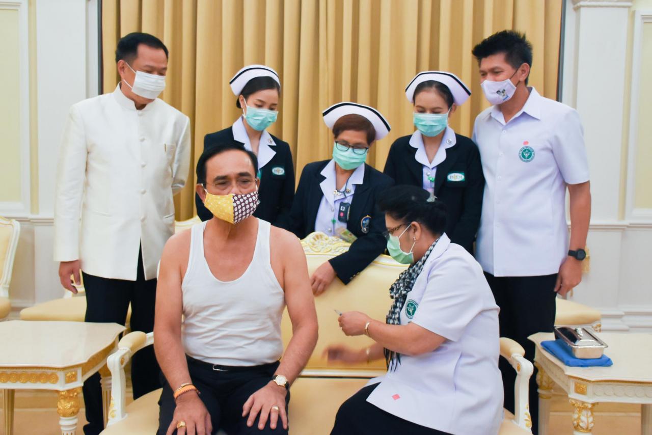 วันที่ 26 พ.ค. นายอนุทิน ชาญวีรกูล รองนายกรัฐมนตรีและรัฐมนตรีว่าการกระทรวงสาธารณสุข และคณะผู้บริหาร เข้าพบพล.อ.ประยุทธ์ จันทร์โอชา นายกรัฐมนตรี และคณะรัฐมนตรี เพื่อฉีดวัคซีนป้องกันไข้หวัดใหญ่ ณ ห้องสีฟ้า ตึกสันติไมตรี ทำเนียบรัฐบาล ก่อนการประชุมคณะรัฐมนตรีวันนี้