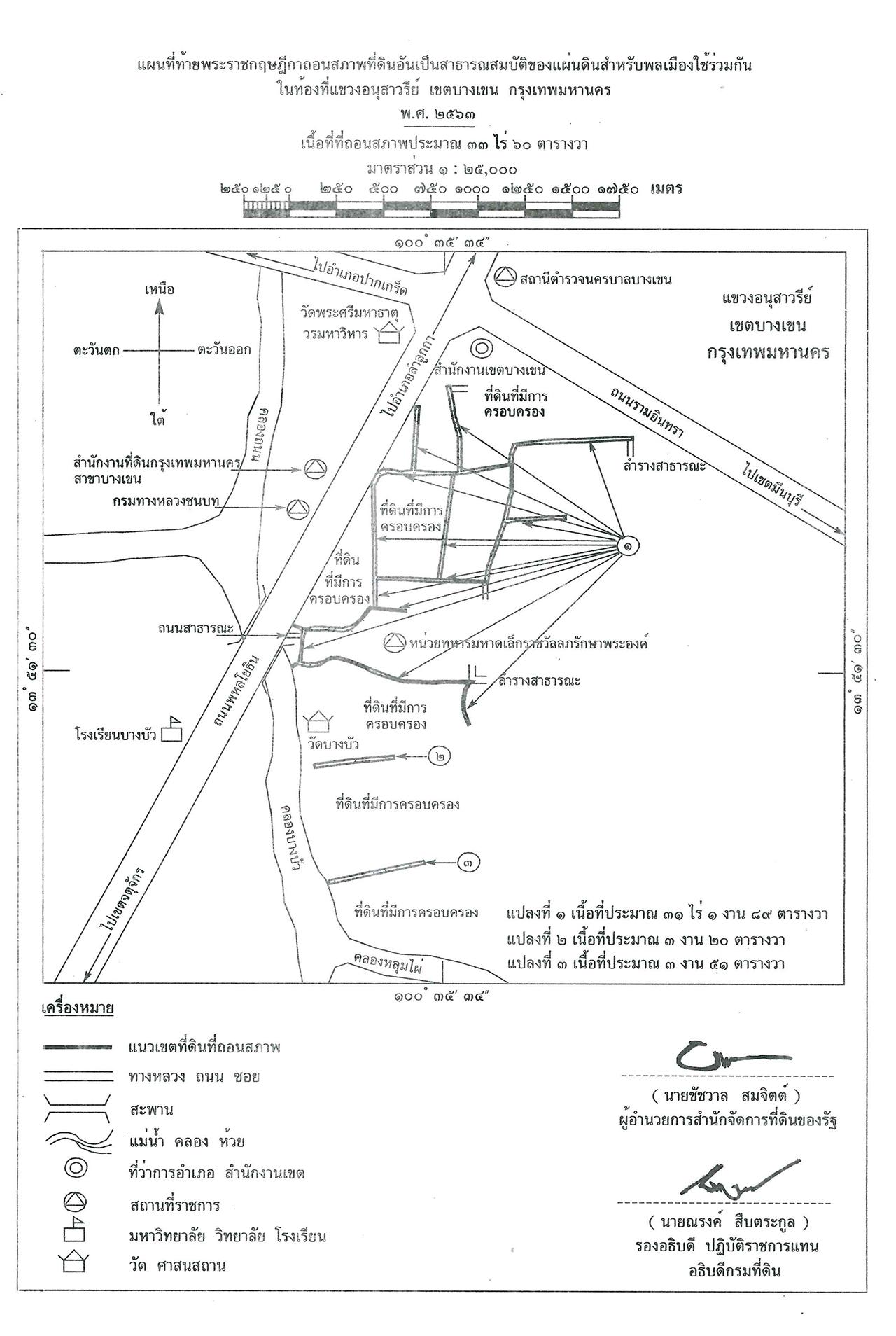 มาตรา 3 ให้ถอนสภาพที่ดินอันเป็นสาธารณสมบัติของแผ่นดินสำหรับพลเมืองใช้ร่วมกันในท้องที่แขวงอนุสาวรีย์ เขตบางเขน กรุงเทพมหานคร ดังต่อไปนี้