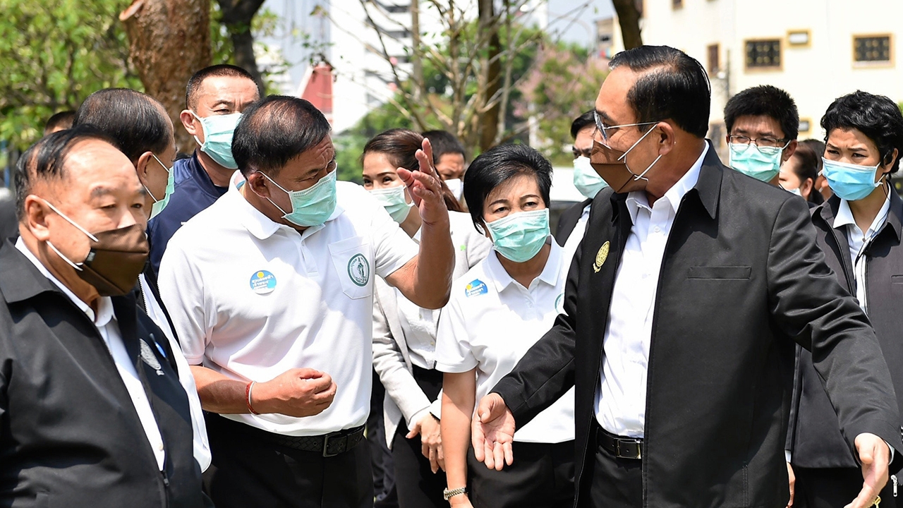 พล.อ.ประยุทธ์ จันทร์โอชา นายกฯ พล.อ.ประวิตร วงษ์สุวรรณ รองนายกฯ และ พล.ต.อ.อัศวิน ขวัญเมือง ผู้ว่าฯ กทม. พูดคุยกันอย่างใกล้ชิดระหว่างเดินชมบรรยากาศใน “สวนลอยฟ้าเจ้าพระยา” บริเวณพื้นที่ช่องกลางสะพานพระปกเกล้า ฝั่งพระนคร หลังทำพิธีเปิดใช้อย่างเป็นทางการ.