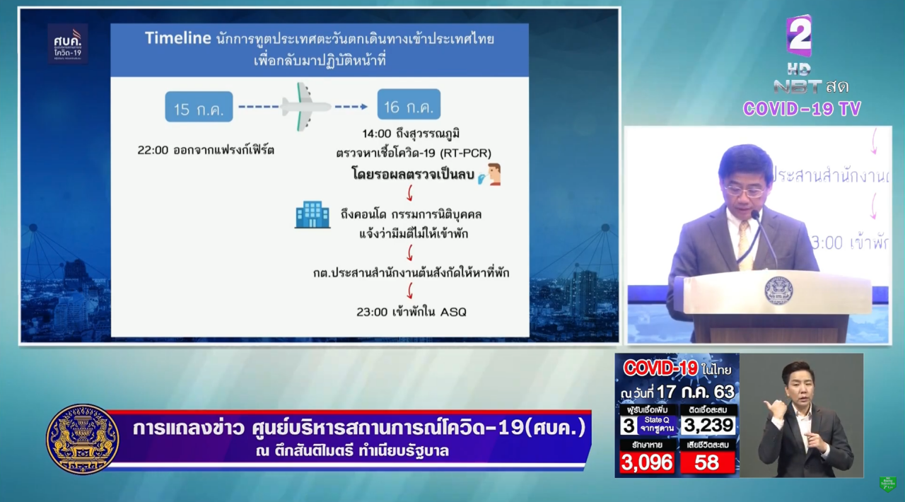 โฆษกกระทรวงการต่างประเทศ แจงไทม์ไลน์ “นักการทูตเอสโตเนีย” ตั้งแต่ออกเดินทางจนถึงไทย ตรวจหาเชื้อโคโรนาไวรัส 2 รอบ ผลเป็นลบทั้งคู่ ชี้ เข้ามาปฏิบัติภารกิจการส่งเสริมความสัมพันธ์ระหว่างประเทศ