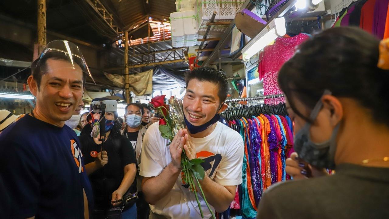 “ในช่วงเช้าผมกับคุณไพบูลย์ได้มีโอกาสเดินไปในตลาดหัวถนนชุมชนปากเกร็ด เพื่อรับฟังสภาพความเป็นอยู่ของพี่น้องประชาชน ผมได้รับฟังสถานการณ์เศรษฐกิจจากพ่อค้าแม่ค้าให้ผู้ประกอบการจริง สิ่งที่ได้รับก็คือพ่อค้าแม่ค้าส่วนใหญ่ในตลาดตั้งแต่ร้านขายของชำร้าน ขายผักร้านขายหมู ทุกคนพูดเป็นเสียงเดียวกันหมดว่า ยอดขายลดต่ำลงไปกว่าครึ่ง เมื่อเทียบกับสถานการณ์เศรษฐกิจ ก่อนโรคโควิด-19 แพร่ระบาด ซึ่งแสดงให้เห็นว่า สภาวะเศรษฐกิจอยู่ในภาวะที่กำลังซื้อภายในประเทศถดถอย พ่อค้าแม่ขายหลายรายตกอยู่ในภาวะที่ยากลำบาก เนื่องจากที่ผ่านมานโยบายกู้หนี้ยืมสิน ซึ่งหลายส่วนเป็นหนี้นอกระบบทำให้มีดอกเบี้ยที่สูง ทุกคนกำลังกระเสือกกระสนดิ้นรนต่อสู้กับชีวิตในรูปแบบของตัวเอง ผมก็หวังว่าภาครัฐจะให้ความสำคัญกับการกระตุ้นเศรษฐกิจ ที่จะกระตุ้นเม็ดเงินลงมาสู่คนเล็กคนน้อยในสังคมได้จริง” นายธนาธร กล่าว...