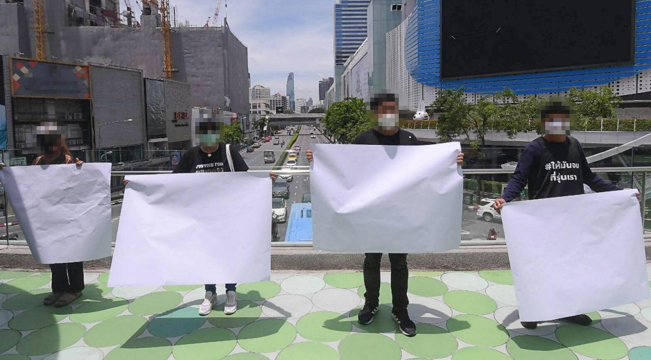 มศว คนรุ่นเปลี่ยน ทำกิจกรรมเชิงสัญลักษณ์ ยืนชูกระดาษสีขาวไร้ข้อความ โต้ม็อบอาชีวะ ยืนยันไม่ได้หมิ่นเบื้องสูง เพียงเรียกร้อง 3 ข้อ ตามกลุ่มเยาวชนปลดแอกประกาศ