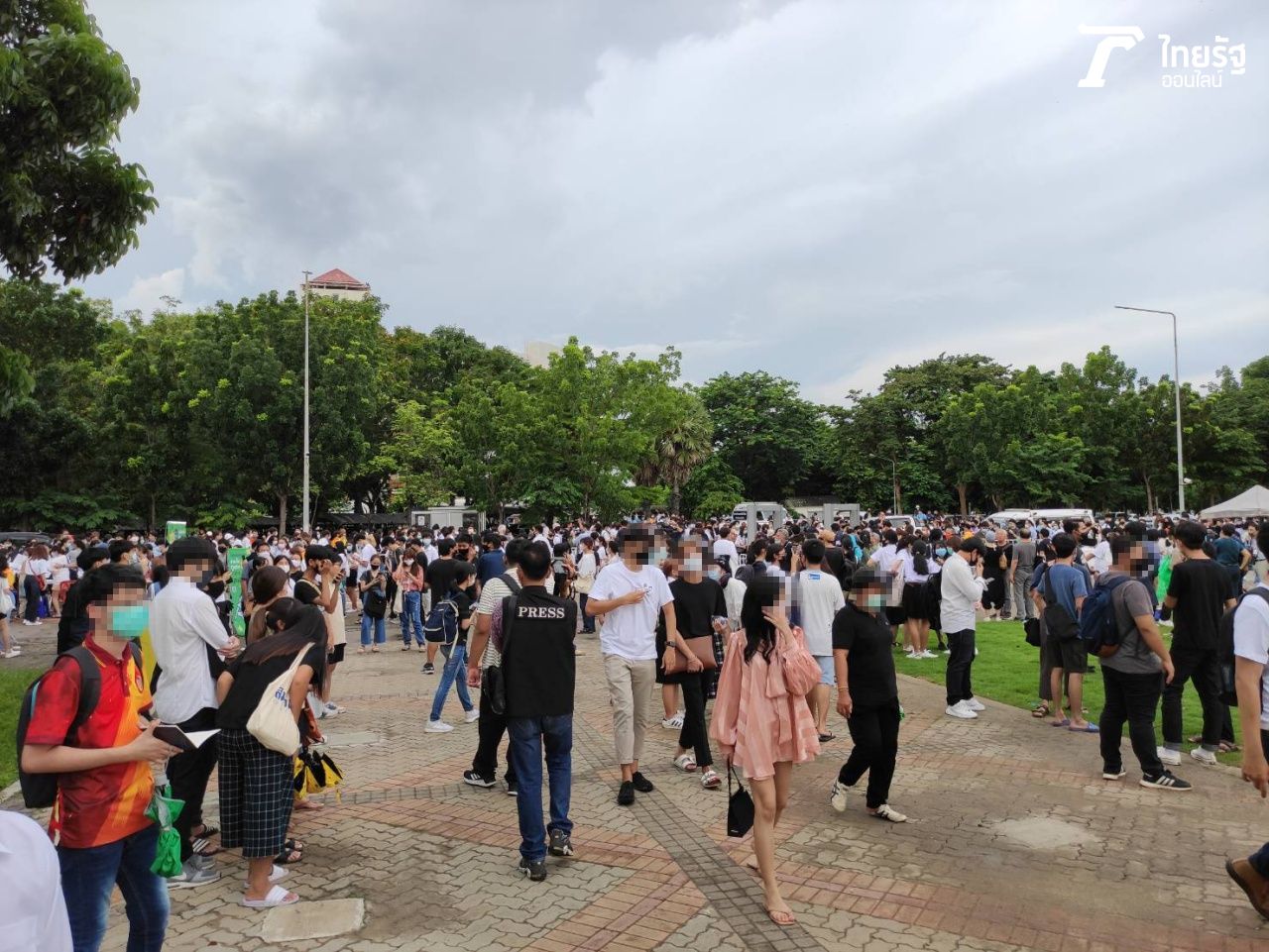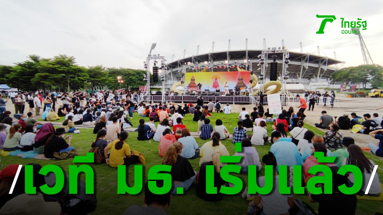 เวที “ธรรมศาสตร์จะไม่ทน” เริ่มแล้ว นักศึกษา นิสิต ประชาชน เดินทางทยอยเข้าร่วมการชุมนุมที่ลานพญานาค ที่ มธ.ศูนย์รังสิต บรรยากาศคึกคัก