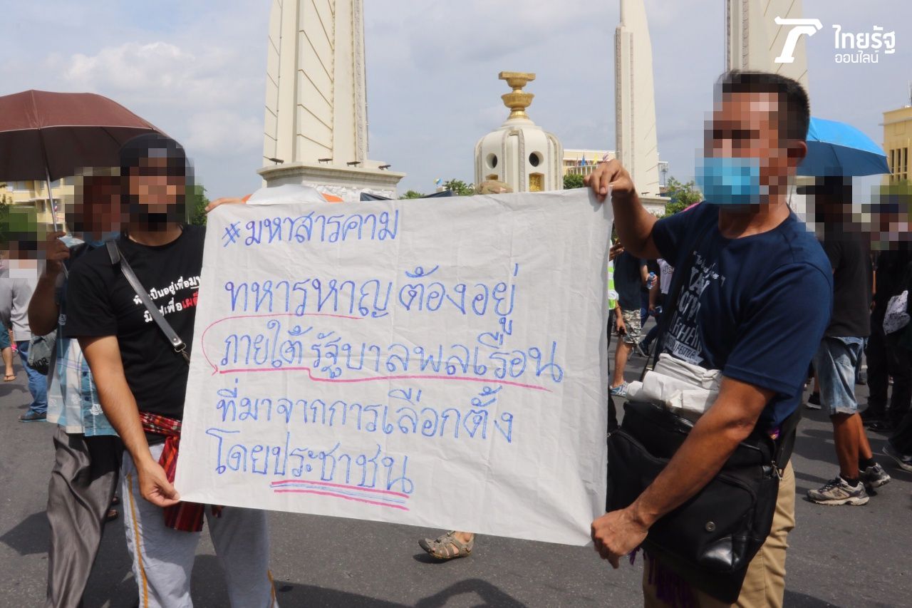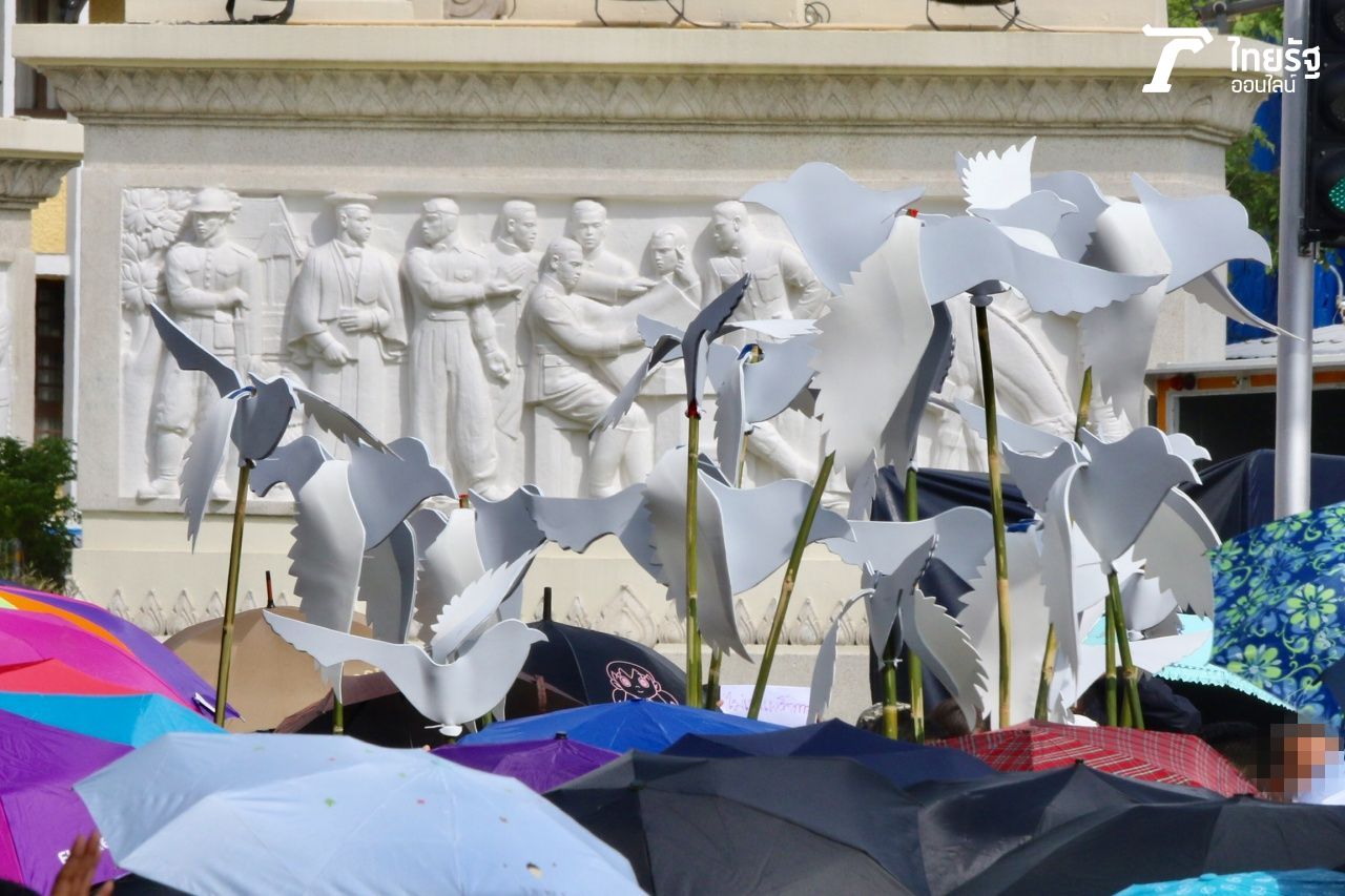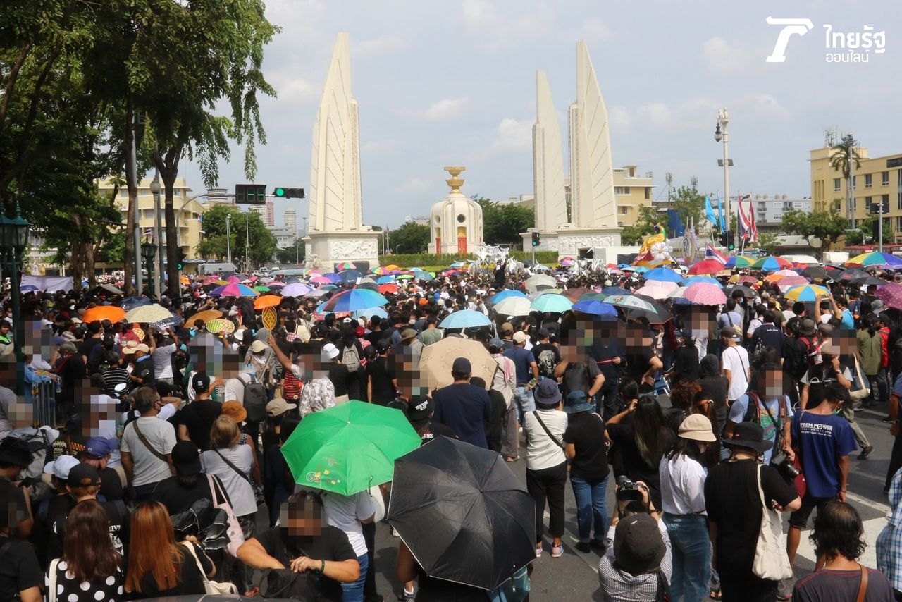 มวลชนเข้าร่วมการชุมนุม ร่วมการฟังปราศรัย คณะประชาชนปลดแอก บริเวณอนุสาวรีย์ประชาธิปไตย เน้นย้ำข้อเรียกร้อง จุดยืน