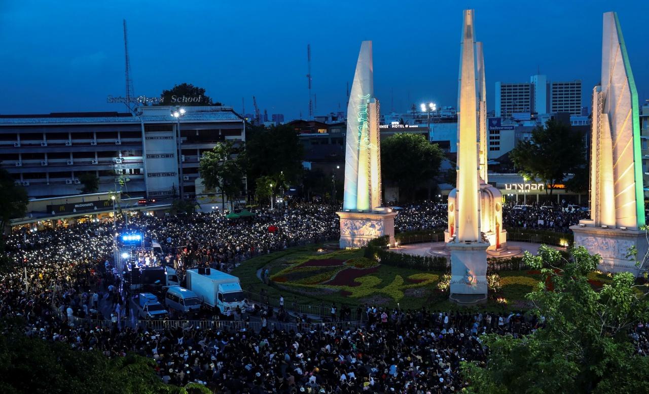 ช่วงค่ำของวันที่ 16 ส.ค. 2563 บรรยากาศการชุมนุมคณะประชาชนปลดแอก ที่บริเวณอนุสาวรีย์ประชาธิปไตย ยังคงดำเนินไปด้วยความคึกคัก มีทั้งการปราศรัยจากแกนนำสลับสับเปลี่ยนกันขึ้นเวที รวมถึงการแสดงดนตรีเพื่อความผ่อนคลาย