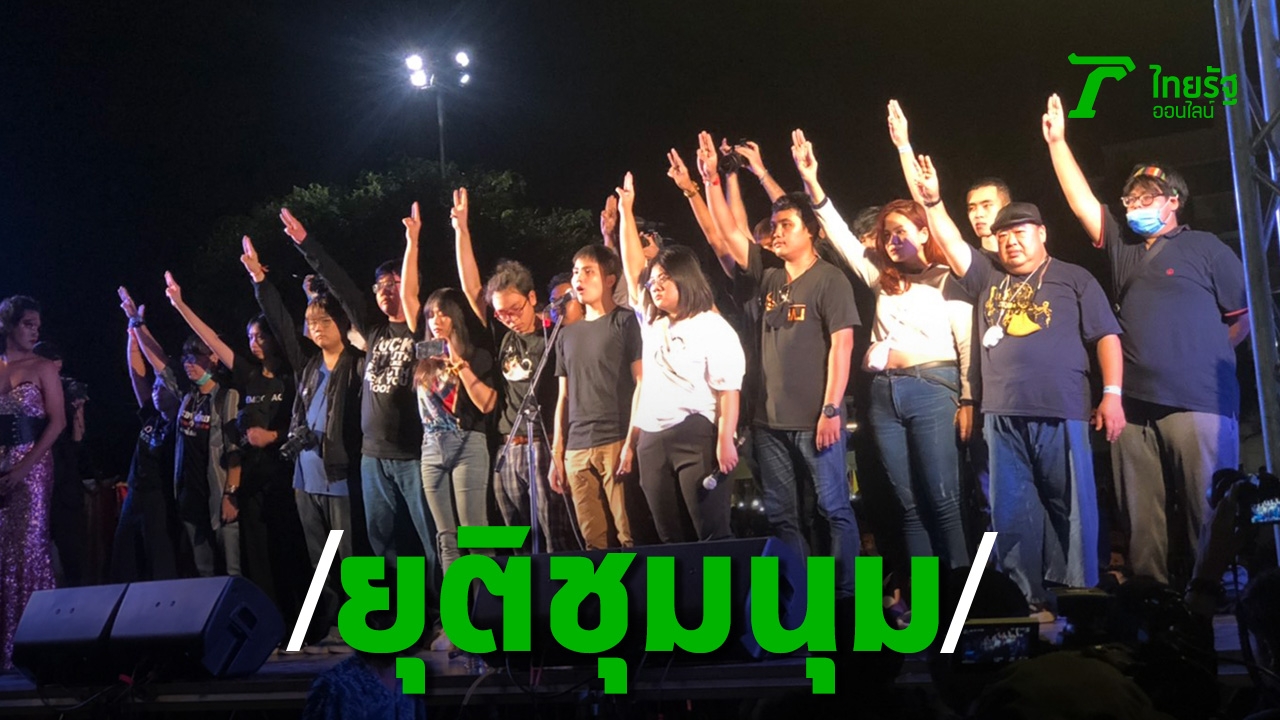 “ทนายอานนท์” ประกาศลั่นกลางเวทีคณะประชาชนปลดแอก สู้ต่อไม่ยอมแพ้ ก่อน 31 แกนนำขึ้นแสดงตัว เน้นย้ำข้อเรียกร้อง จุดยืน และความฝัน ก่อนจบการชุมนุมด้วยความเรียบร้อย