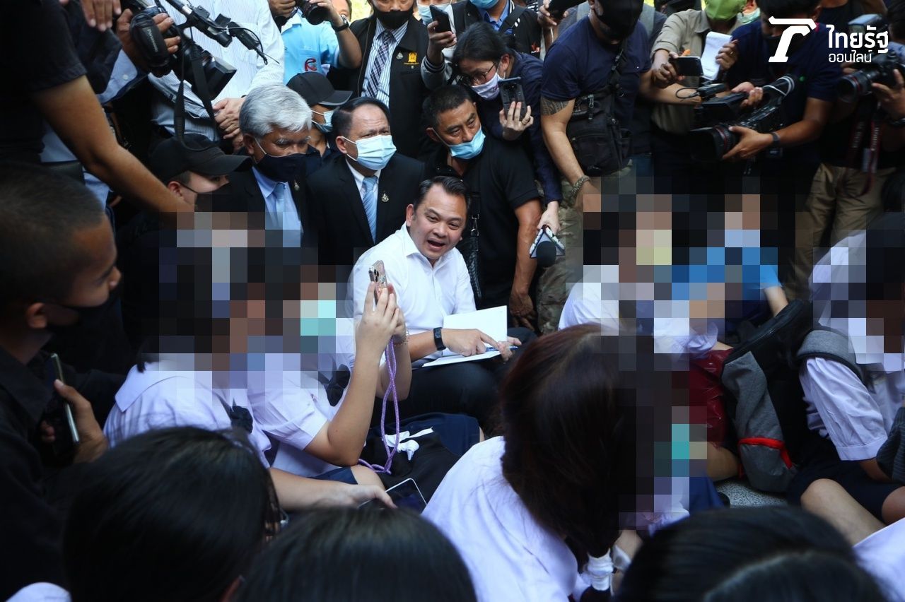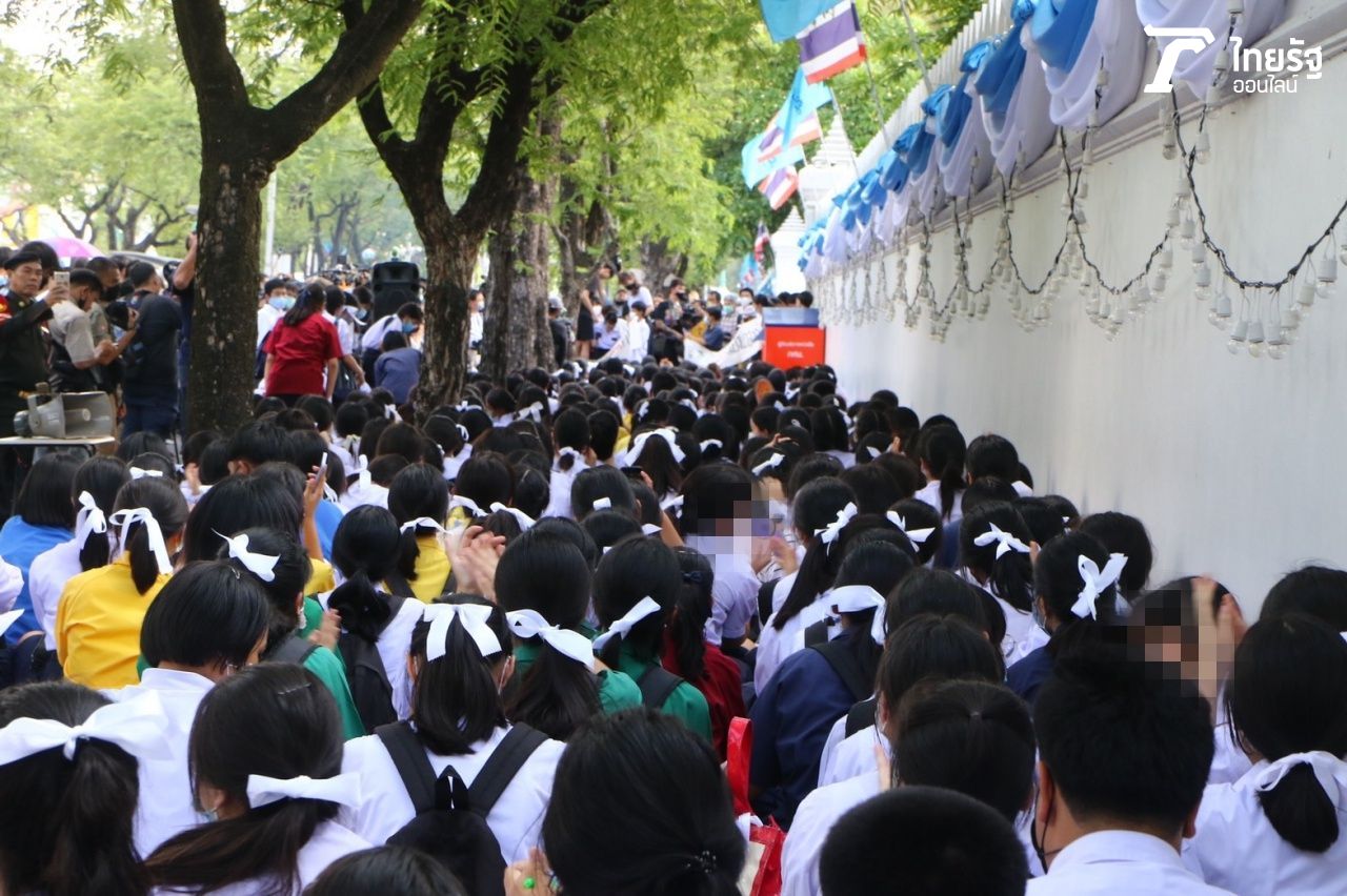 ประมวลภาพ นักเรียนมาชุมนุมหน้ากระทรวงศึกษาธิการ พร้อมเป่านกหวีดไล่ "นายณัฏฐพล" รมว.ศึกษาธิการ อ้างมาเรียกร้องการแก้ไขสิทธิเบื้องต้นของนักเรียน