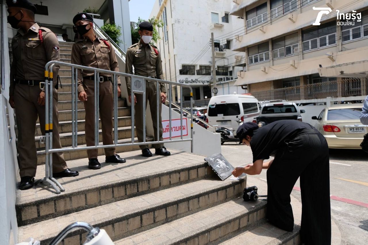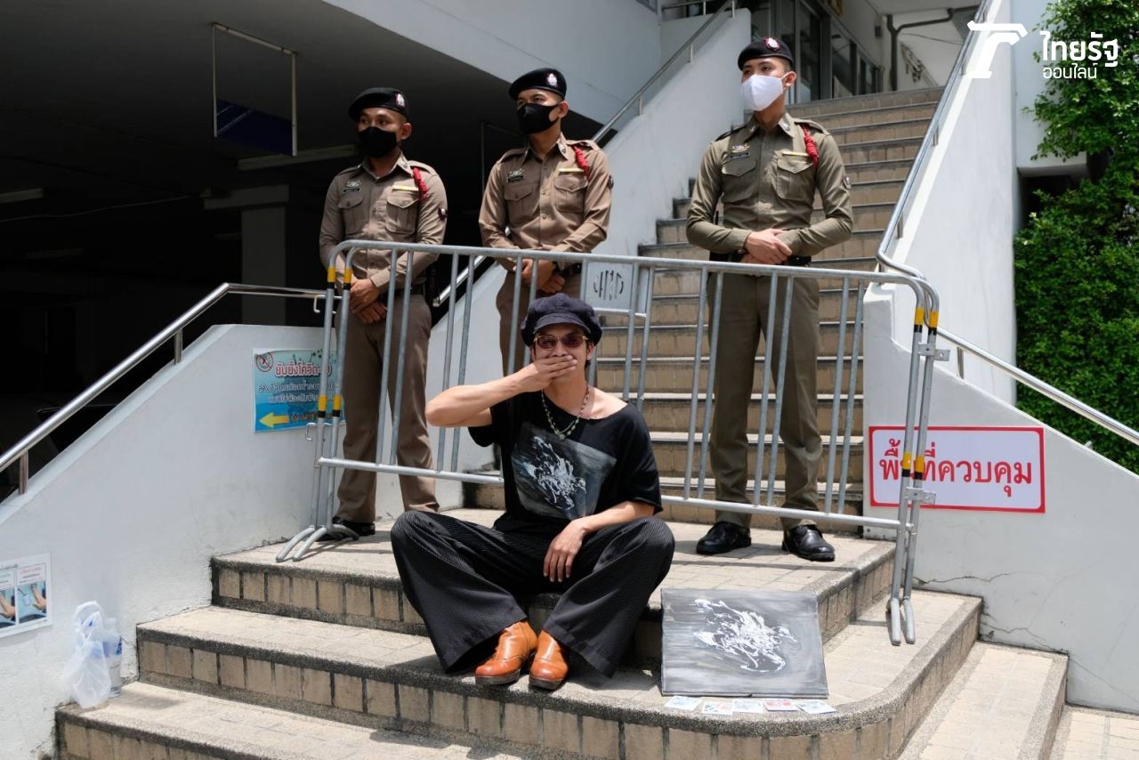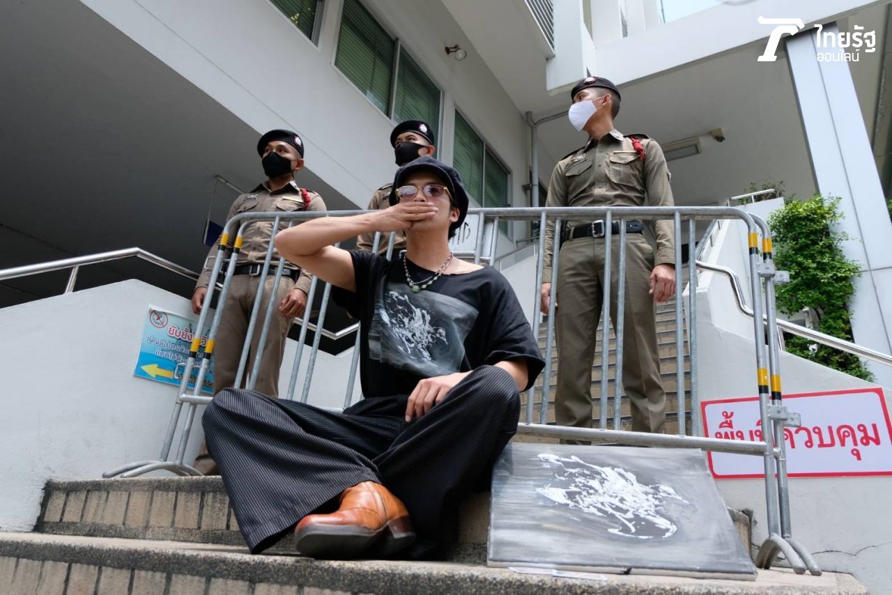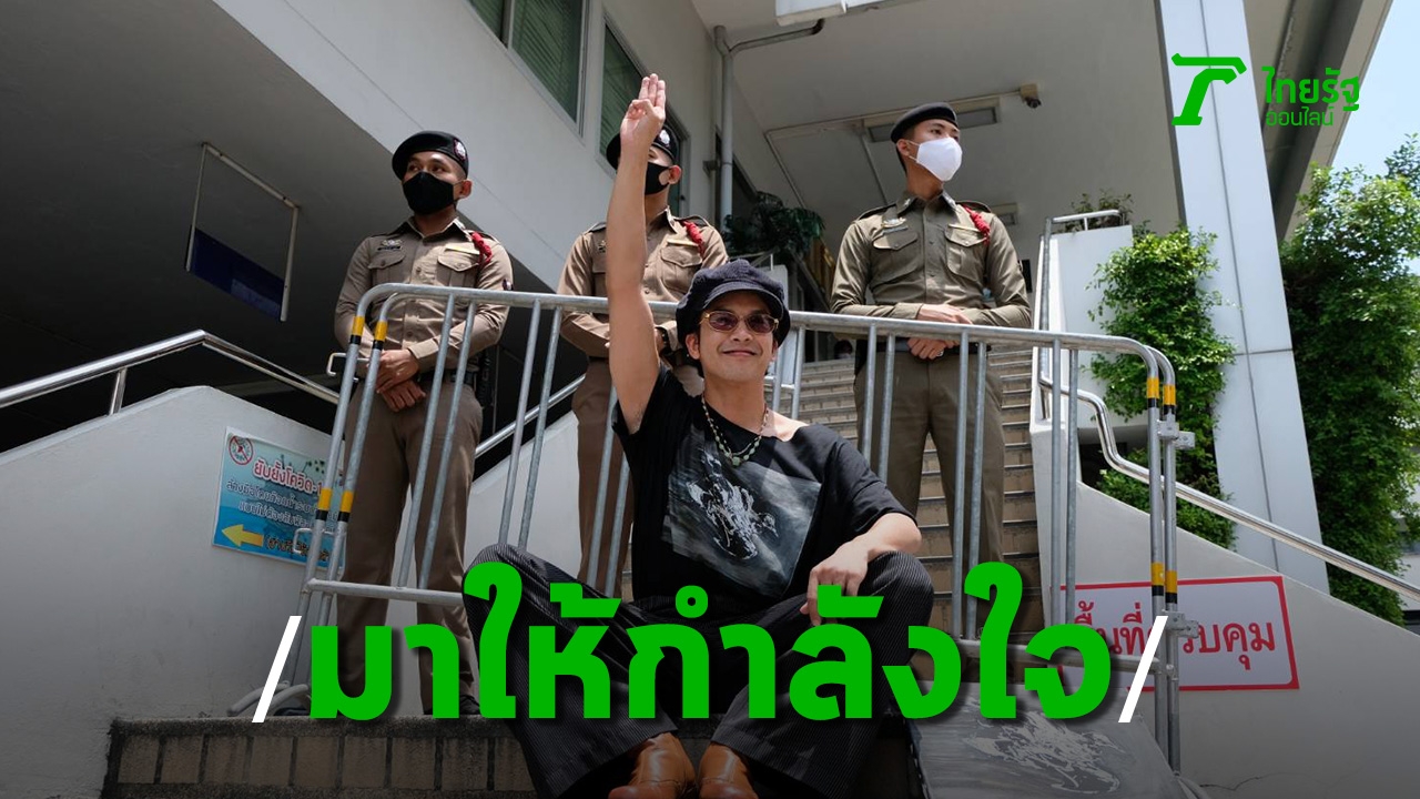 นักร้องวง The Bottom Blues "แอมมี่" โผล่มาให้กำลังใจ "ฮอคกี้" แร็ปเปอร์เพลง "ประเทศกูมี" ที่สน.สำราญราษฎร์ หลังถูกตำรวจจับฐานร่วมชุมนุม
