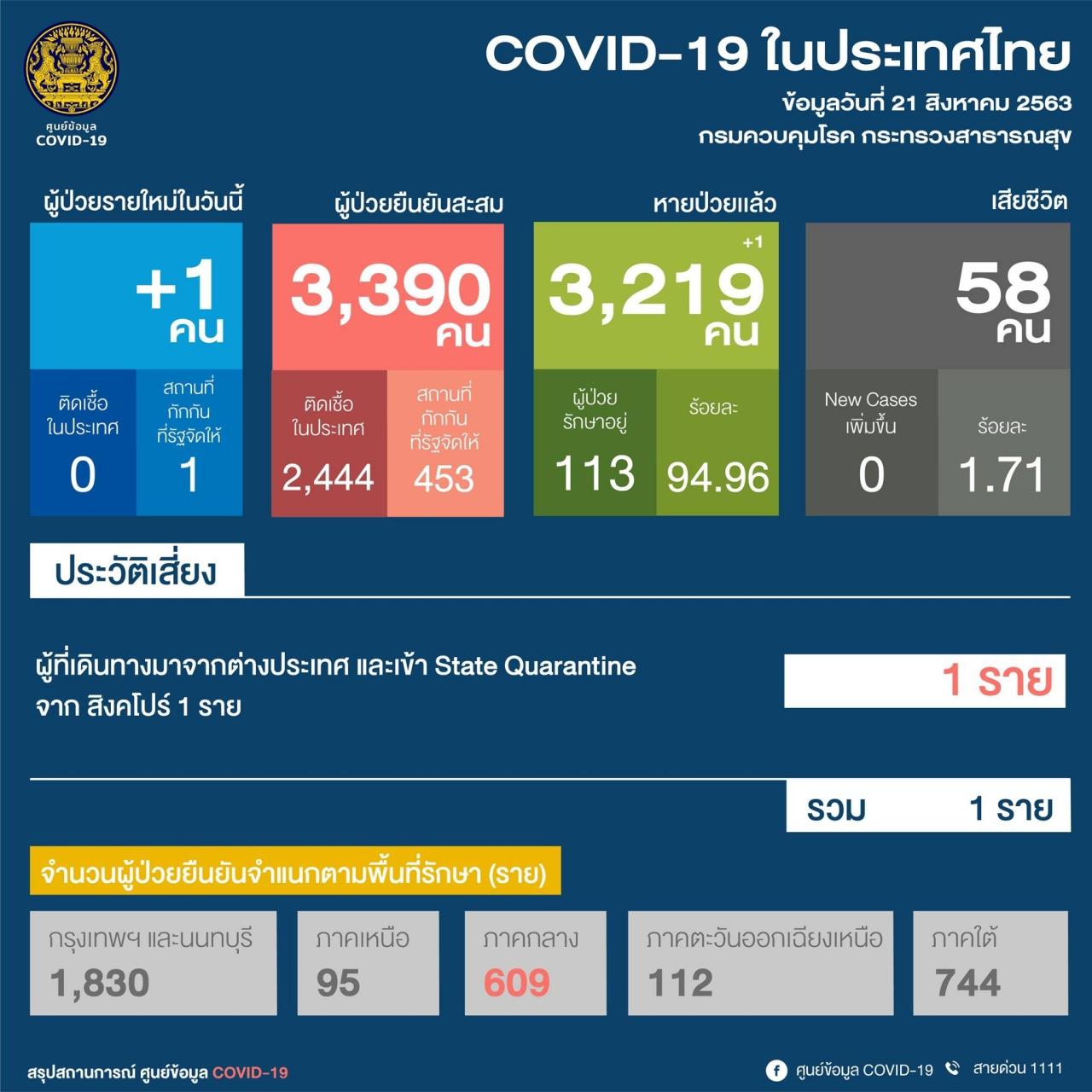รักษาหายเพิ่มขึ้น 1 ราย
