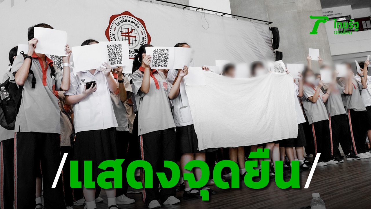 ประมวลภาพ นักเรียนโรงเรียนสาธิต มศว ประสานมิตร ร่วมกันยืนถือกระดาษเปล่า-ผ้าสีขาว เพื่อแสดงออกเชิงสัญลักษณ์ ไม่เอาเผด็จการ
