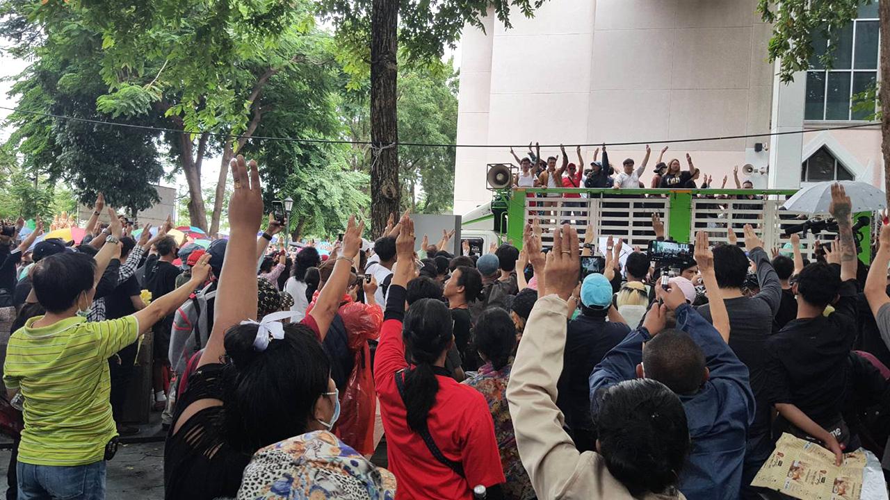 - น.ส.ปนัสยา สิทธิจิรวัฒนกุล หรือ รุ้ง แกนนำแนวร่วมธรรมศาสตร์และการชุมนุม และ นายภาณุพงศ์ จาดนอก หรือ ไมค์ ระยอง ขอเจรจากับเจ้าหน้าที่มหาวิทยาลัยธรรมศาสตร์ เพื่อขอใช้พื้นที่จัดการชุมนุม (อ่านข่าว - คลิกที่นี่)